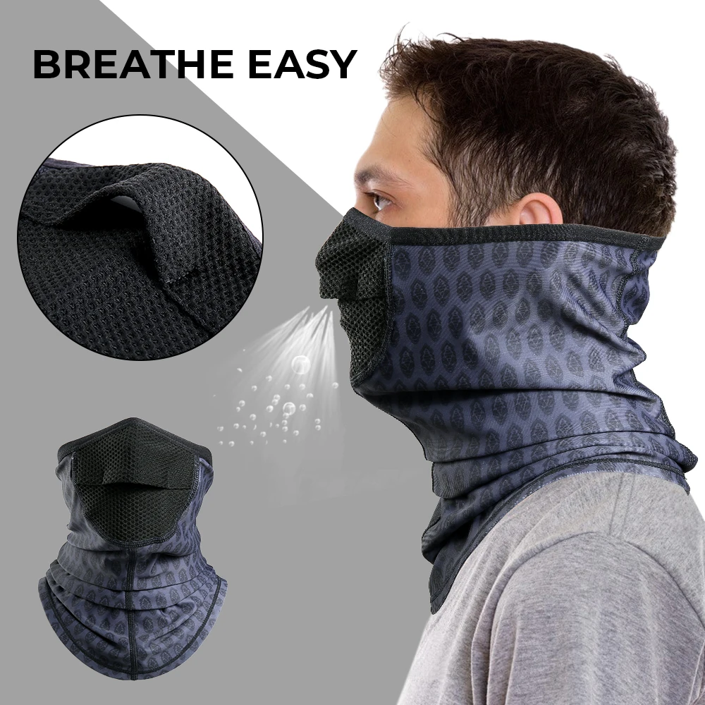 La parte de la nariz está abierta y es muy fácil de respirar. Este es un diseño único de nuestra nueva bufanda, que permite a la gente al aire libre disfrutar más del deporte.