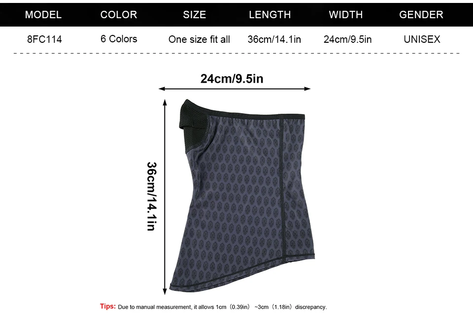 Características:1. Practica ciclismo al aire libre, senderismo, escalada de montaña y otros deportes en verano. Use una bufanda de protección solar para resolver las deficiencias de quemaduras solares, bronceado, sudoración, engrasado, aspirado y comer suciedad.