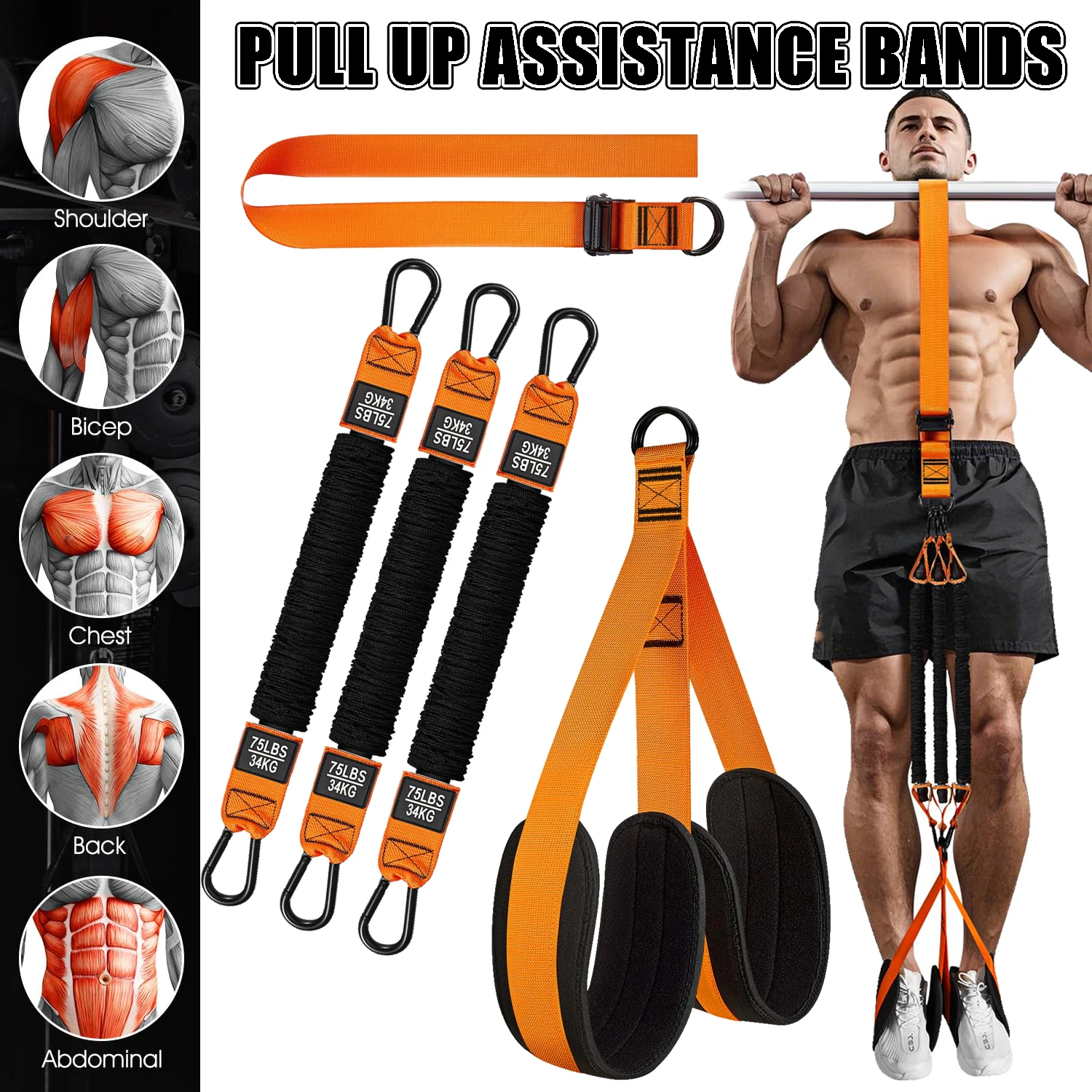【Nuevos accesorios multifuncionales mejorados】El juego patentado de bandas de ayuda para tirar está equipado con correas ajustables, 3 bandas elásticas y 2 eslingas para colgar con almohadilla de esponja.Puedes lograr el propósito de ejercitar todo el cuerpo según diferentes combinaciones.