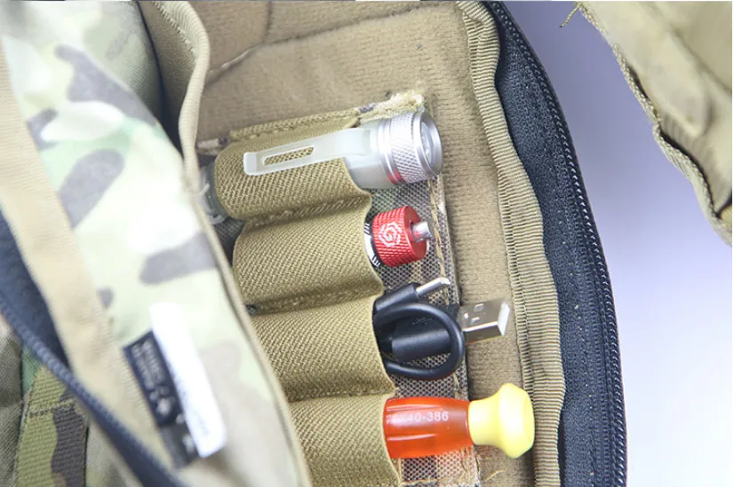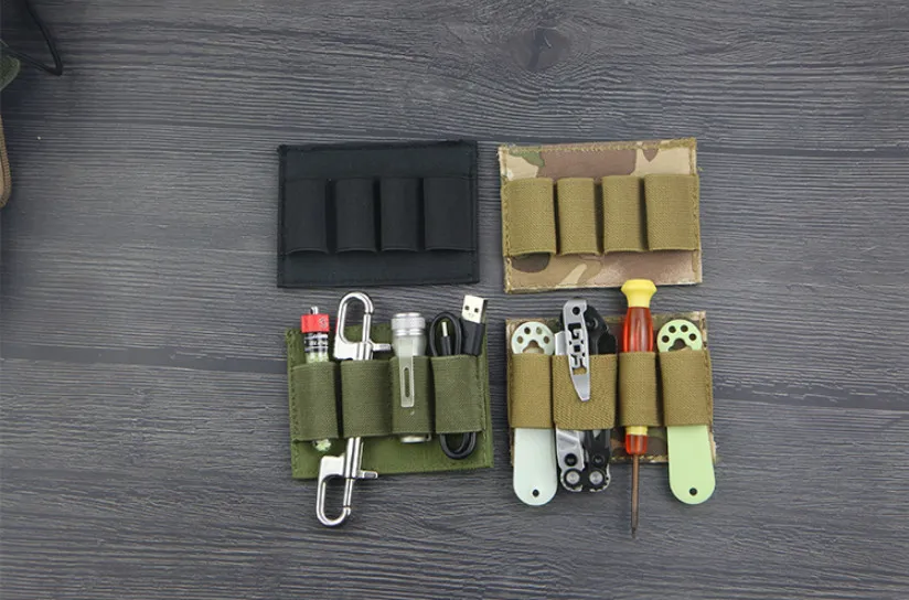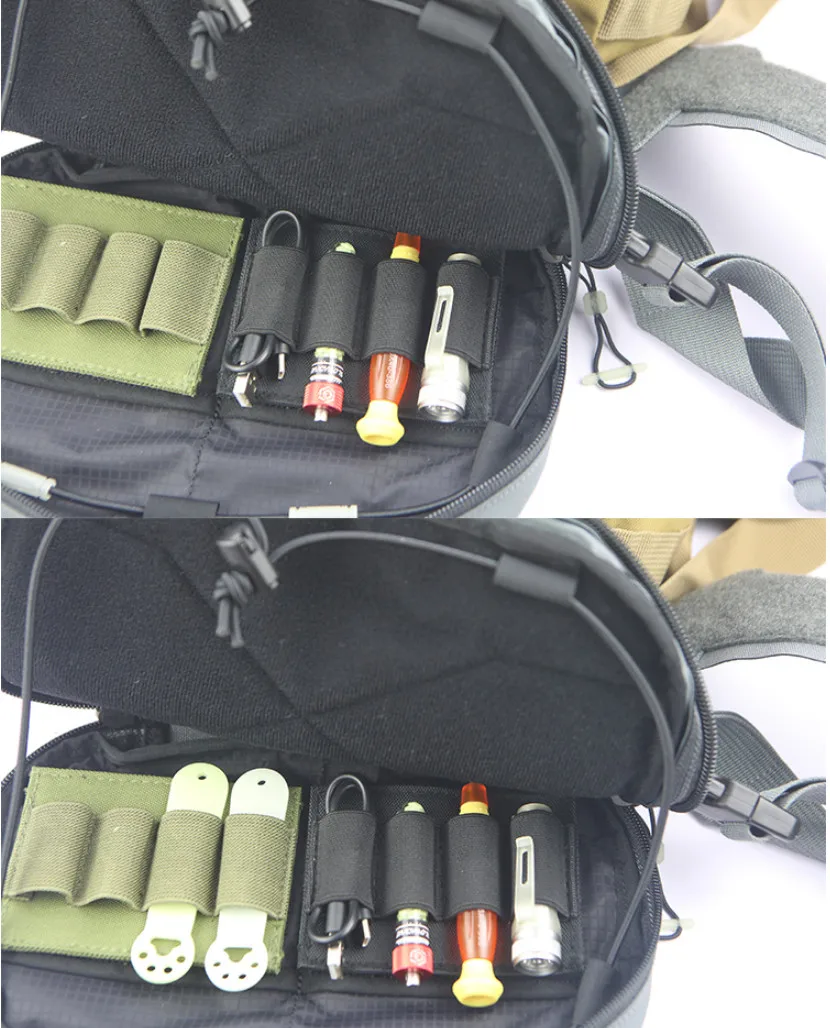 Descripción: Esta es una bolsa de herramientas/mochila incorporada/bolsa para escopeta, con cuatro bandas elásticas de goma que pueden colocar una gran cantidad de artículos pequeños diarios, como llaves, artículos de papelería, cuchillos, cables de datos, bancos de energía, linternas para bolígrafos, multiusos. gadgets, etc.y puede lograr un acceso rápido, conveniente y ordenado