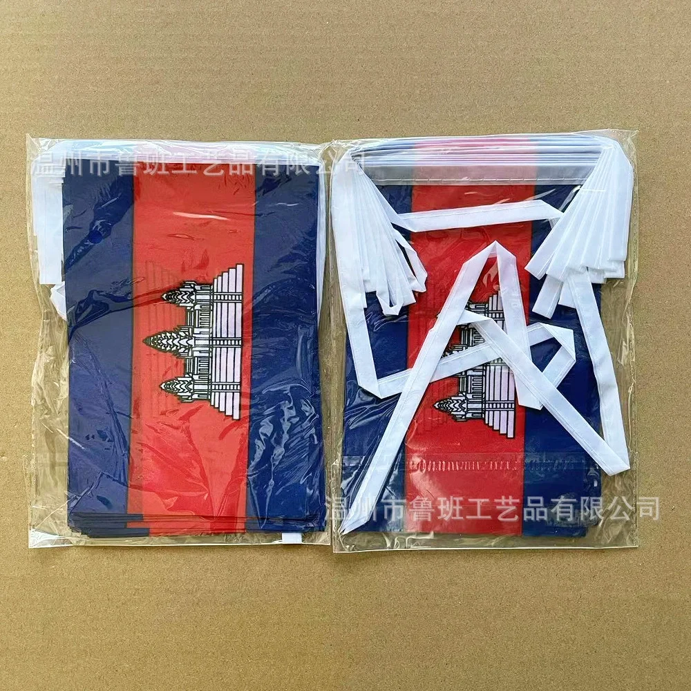 Banderas de mordeo de Camboya SKY FLAG, 14x21cm, 20 unids/lote, banderas de cuerda de Camboya, banderín para decoración de fiestas y festivales