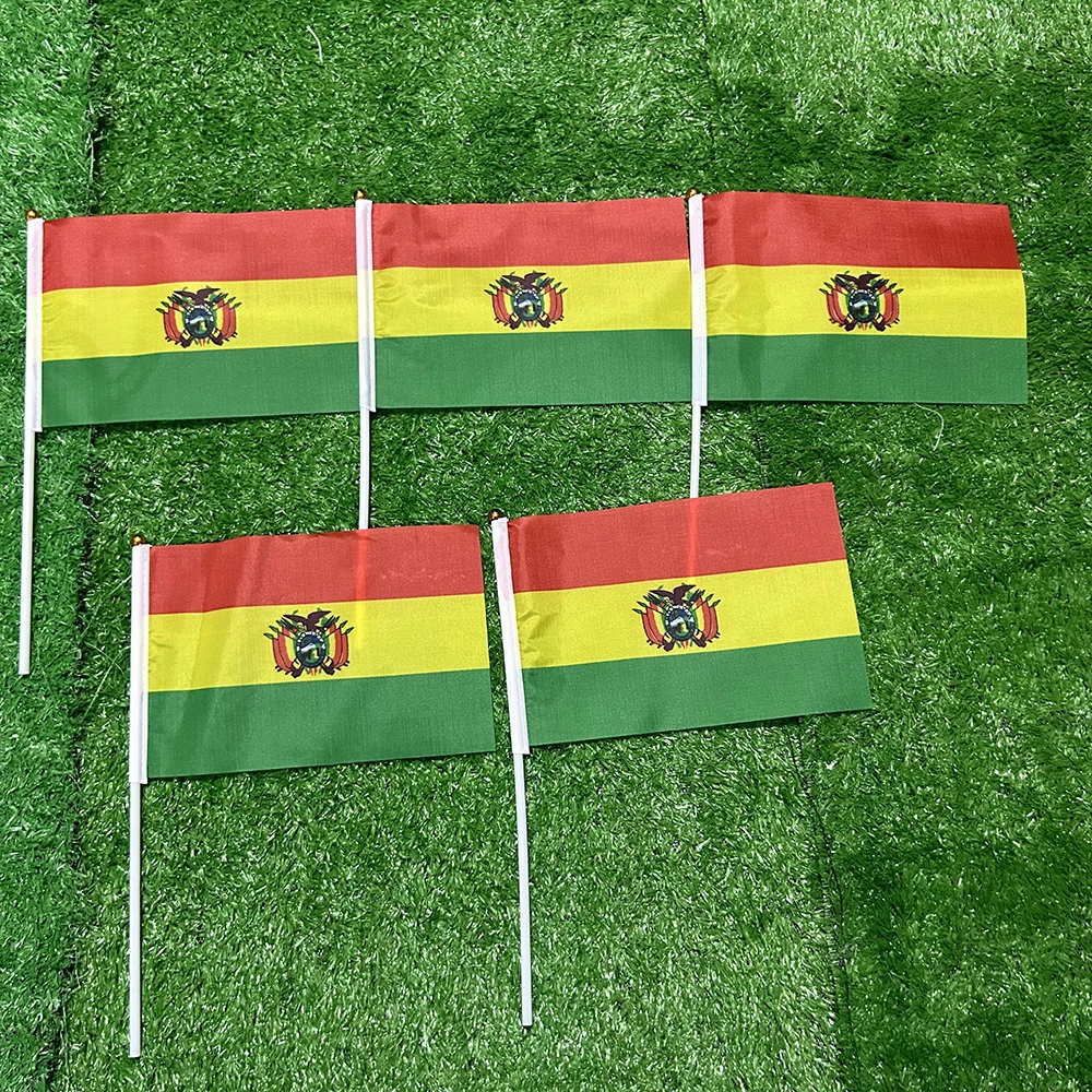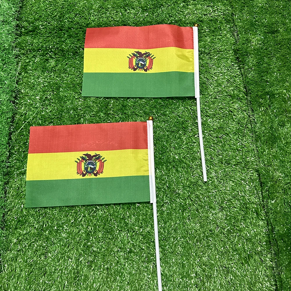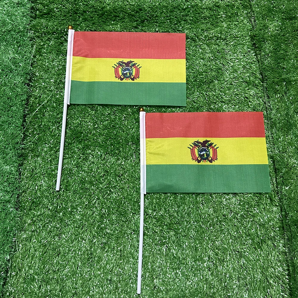 BANDERA SKY 10/20/50/100 Uds. Bandera de mano de Bolivia 14*21CM Bandera de Bolivia bandera nacional de la mano con bandera de mano de poste