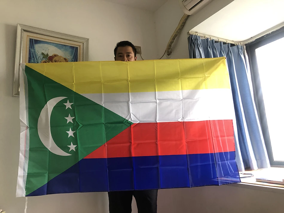 BANDERA SKY Comoros bandera 90*150cm colgante poliéster Unión de la bandera de Comoros para decoración del hogar