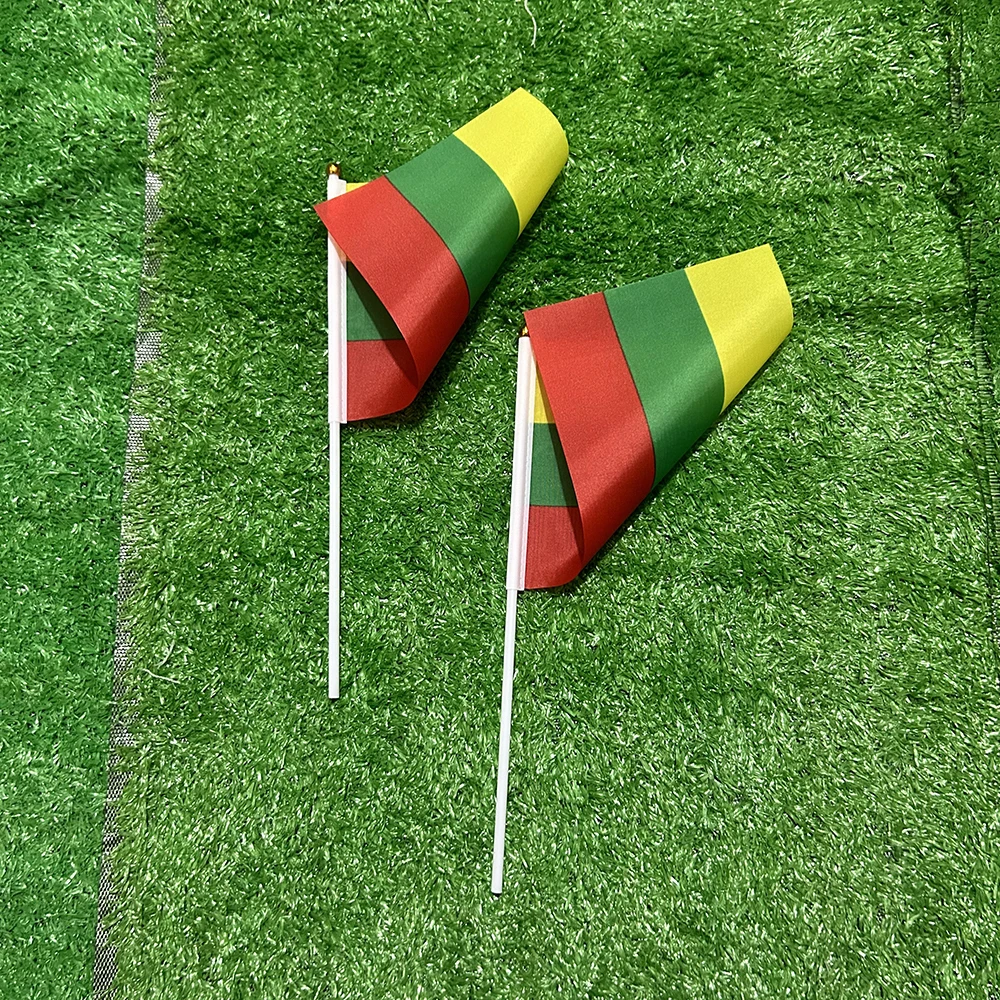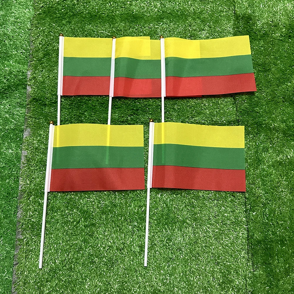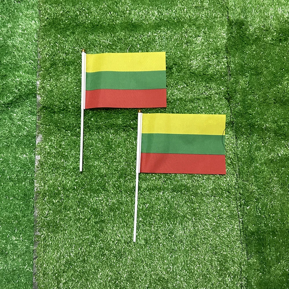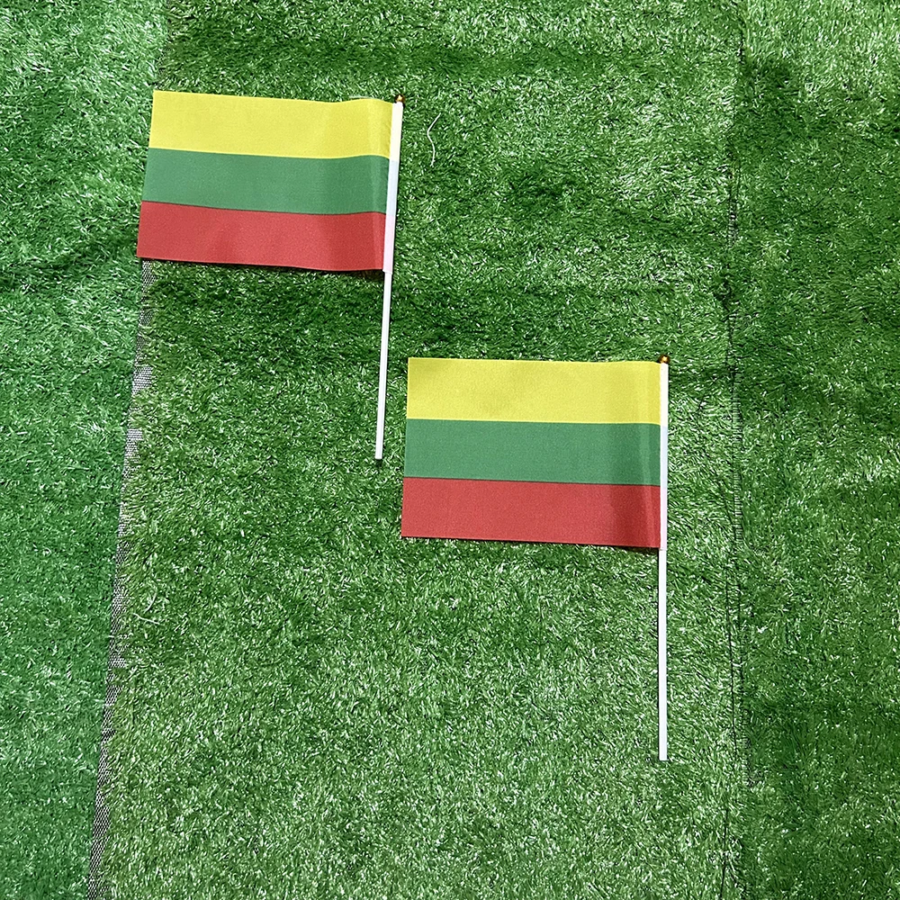 Bandereta de mano SKY Lituania, 10/20/50/100 Uds., 21*14cm, banderas onduladas de mano Lituania con poste de plástico para actividades, decoración del hogar