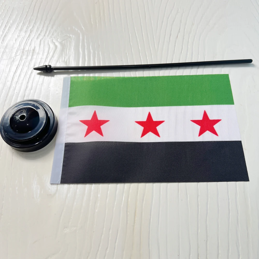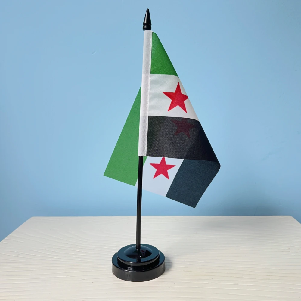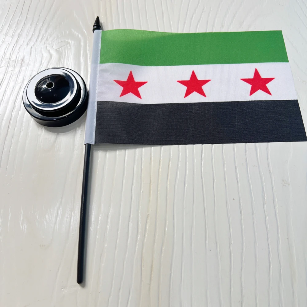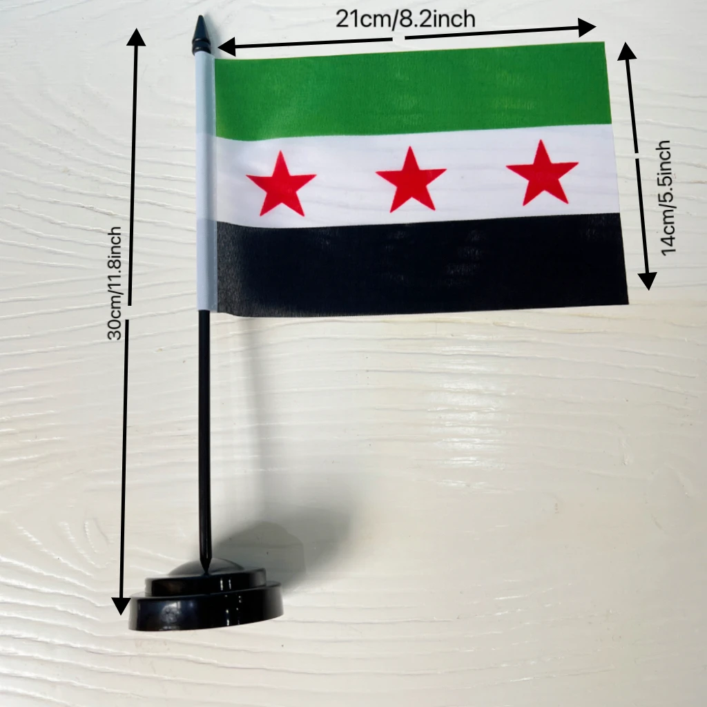 Bandera de escritorio de oficina de 14x21cm, pancarta de Siria, cartel de tres estrellas de la República Árabe siriana