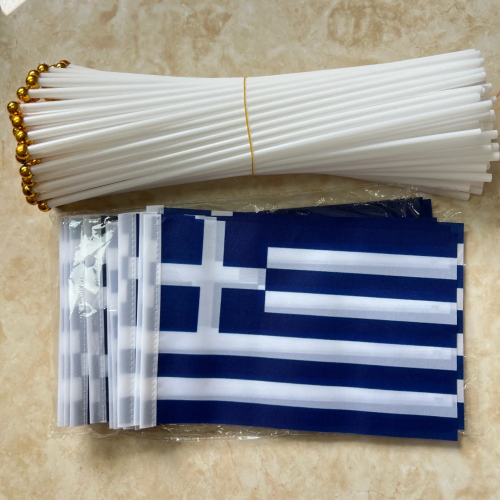 Bandera griega 14*21 cm50/100 Bandera griega de poliéster estándar portador de la bandera ondeando bandera asta de plástico