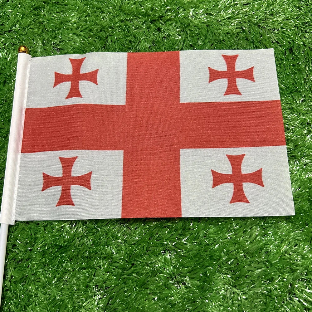 SKY FLAG Bandera de mano Georgia 10/20/50/100 Uds 21*14cm Banderas gemelas onduladas a mano con poste de plástico para actividades deportivas decoración del hogar