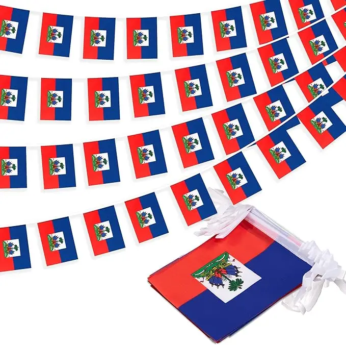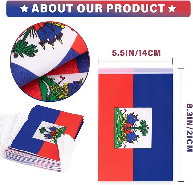 Bandera Nacional Haiti 14x21cm20 unids/set banderas Haiti banderines banderines de hilo banderines Festival fiesta vacaciones