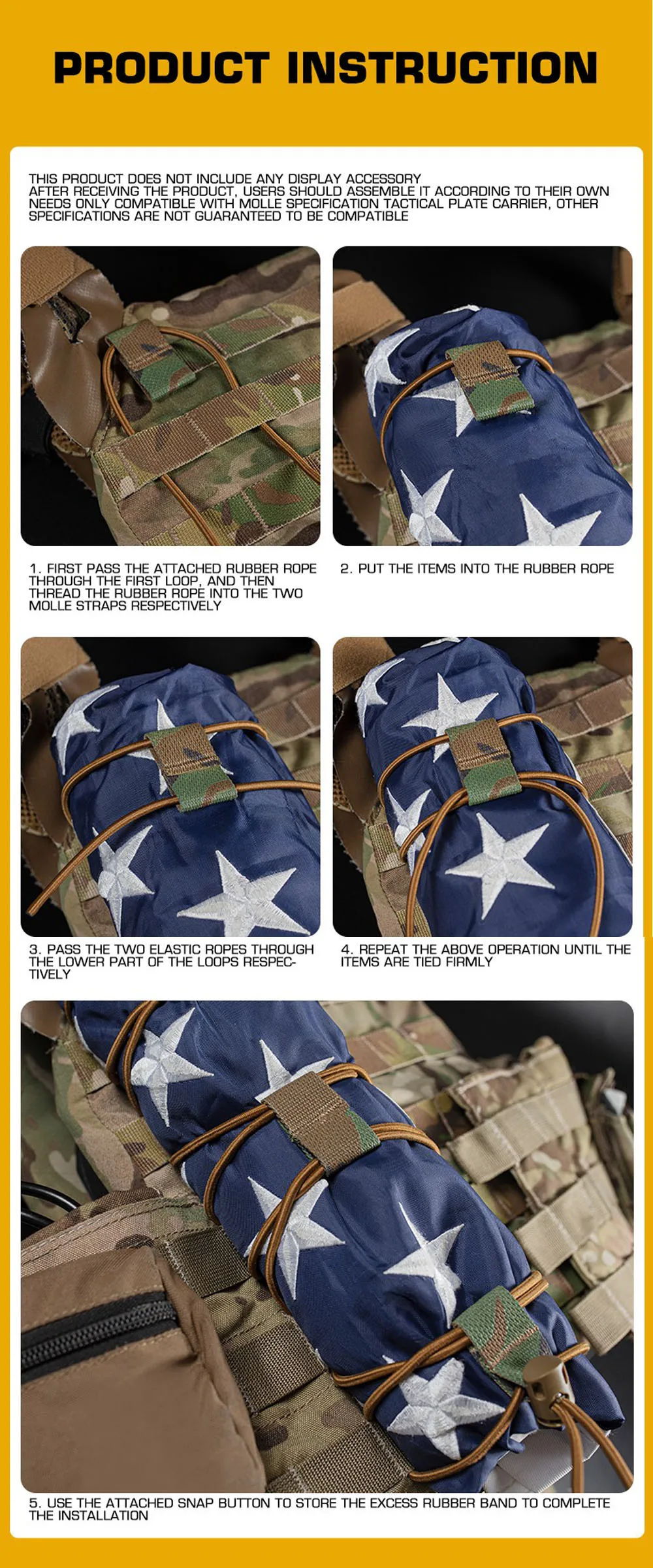 Bandera nacional táctica, correa elástica de sujeción, cordón de choque ajustable, retención MOLLE, chaleco de caza, organizador, Kits de herramientas