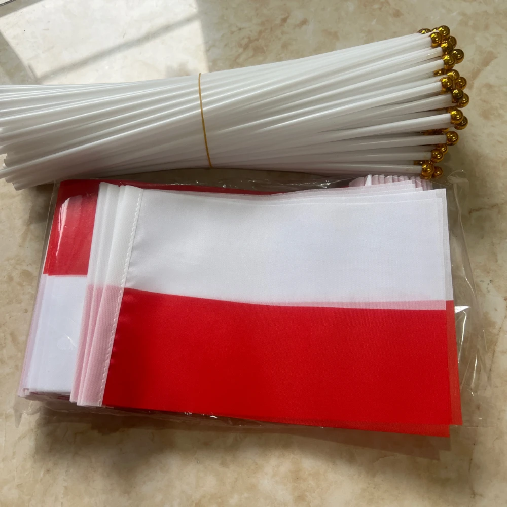 Bandera de Polonia 14x21cm Bandera que agita a mano polaca Parte superior redonda con poste de plástico