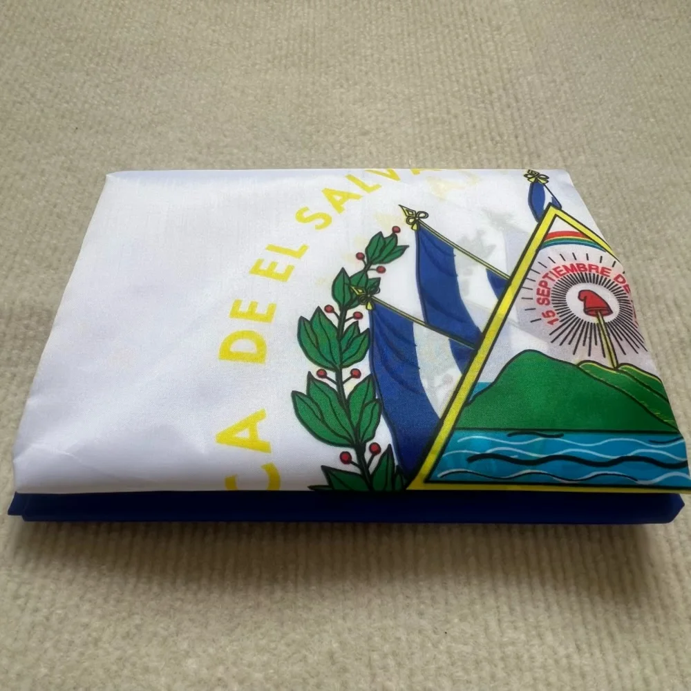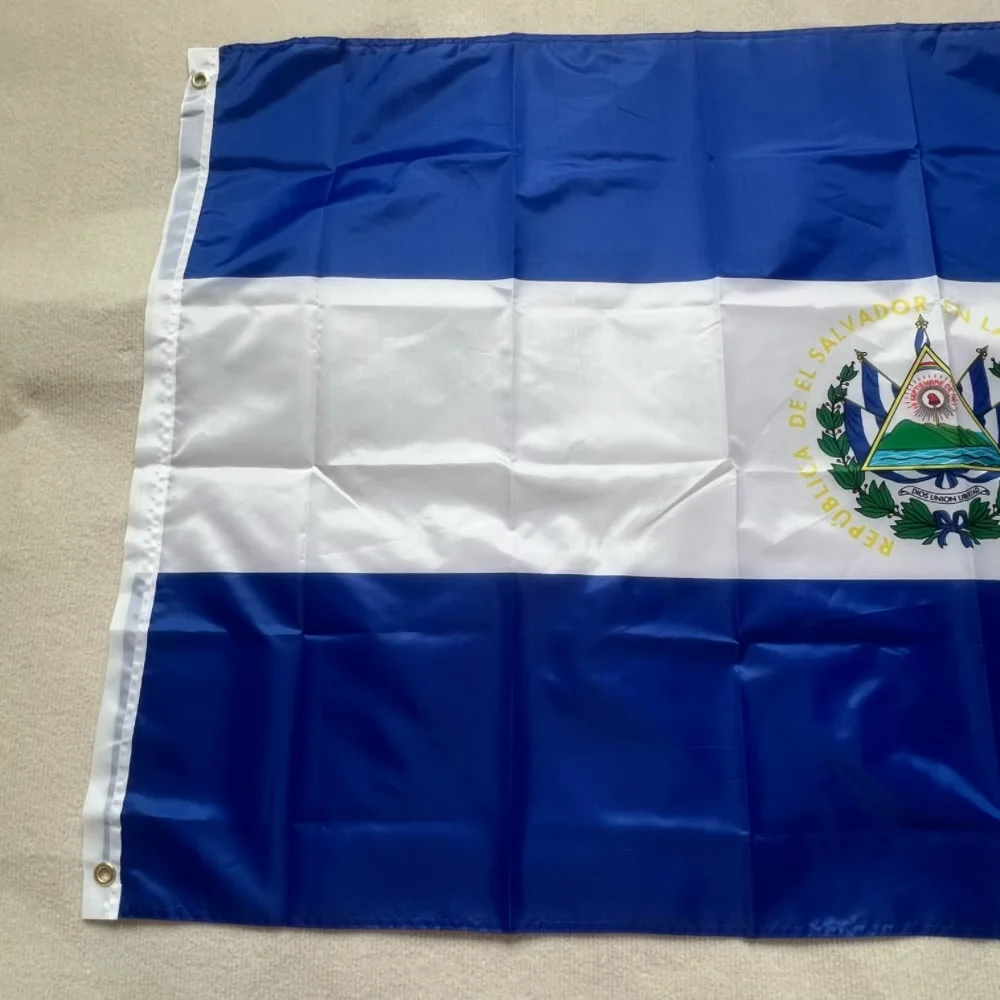 Bandera salvadoreña 90x150cm SV SLV Poliéster símbolo patriótico Pancartas colgantes de poliéster decoradas en interiores y exteriores