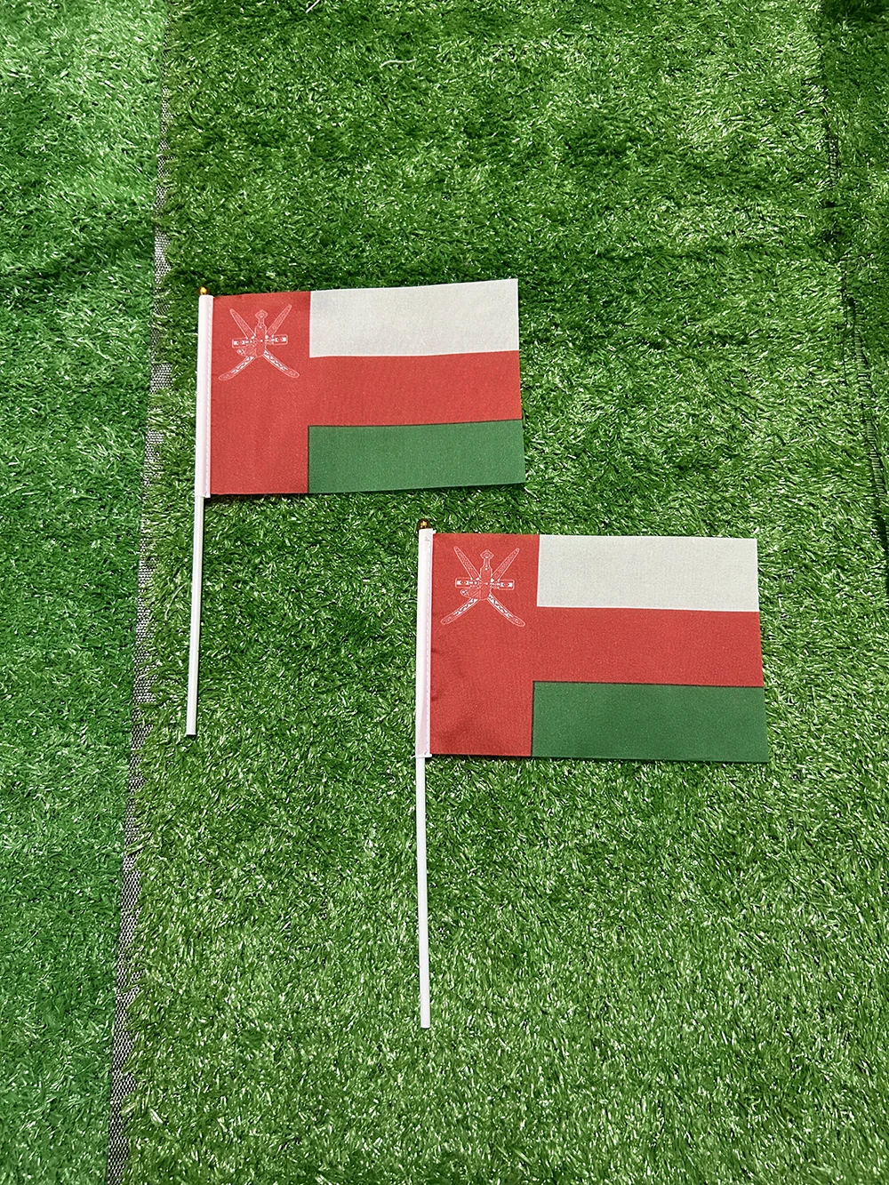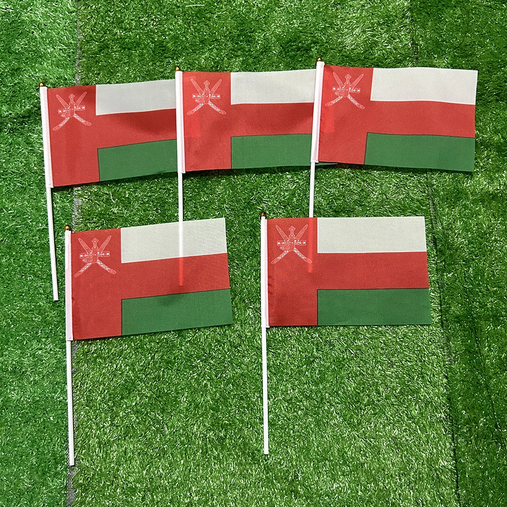 BANDERA SKY 50/100 Uds 21*14cm Bandera nacional de Oman banderas de Oman banderas onduladas a mano con poste de plástico para actividades deportivas decoración del hogar