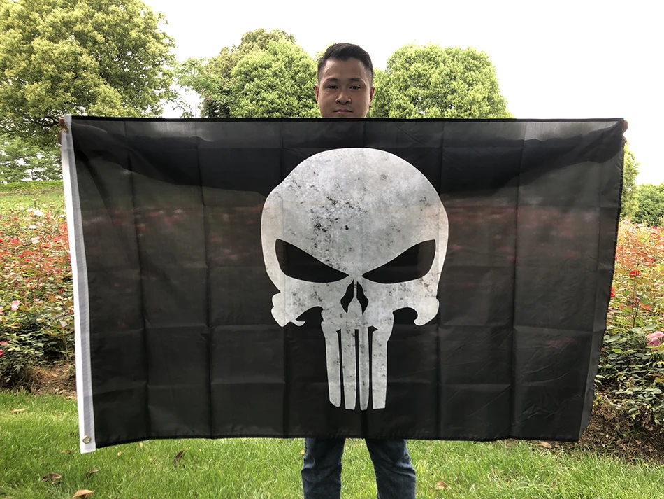 SKY FLAG 90x150cm Bandera punidora línea azul delgada hueso de calavera punidor americano bandera de policía 3x5 pies fondo negro decorar pancarta
