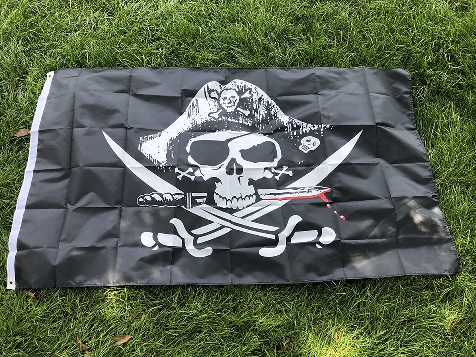 BANDERA SKY 90X150cm Jolly Roger Calavera Cruz huesos Pirata Dead Mans bandera de pecho colgante cartel de poliéster para decoración