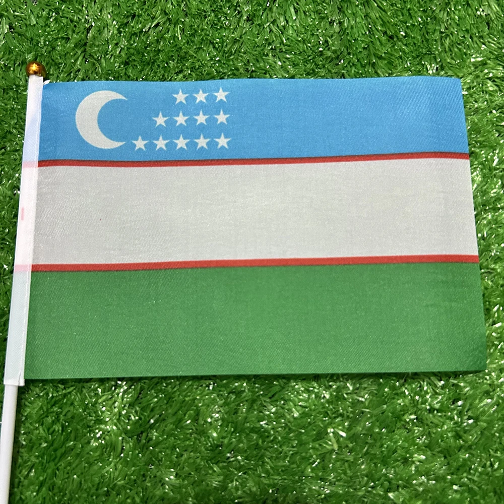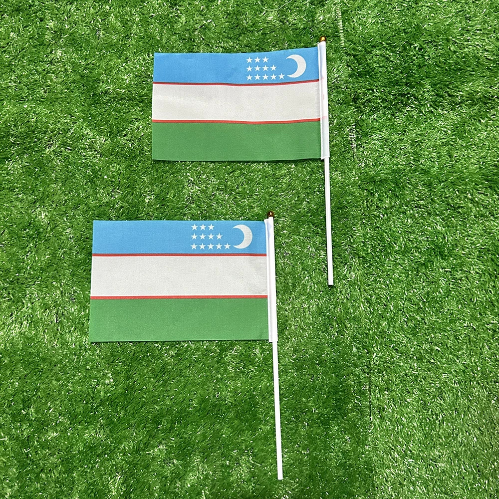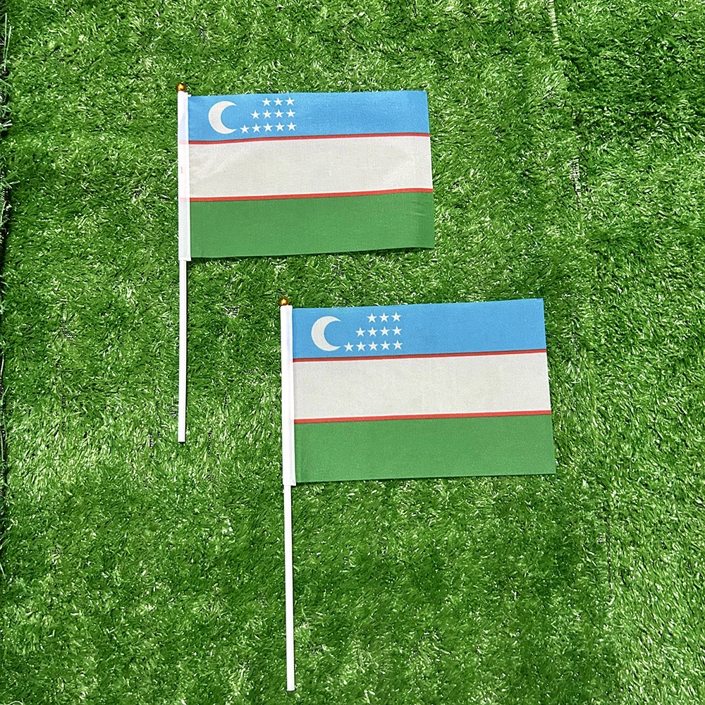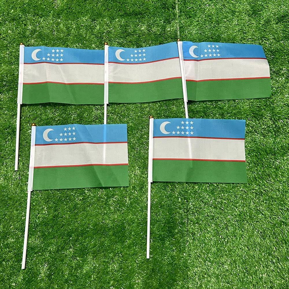 BANDERA SKY Bandera de Uzbekistán 50/100 Uds 21*14cm banderas onduladas a mano de Uzbekistán con poste de plástico para actividades deportivas decoración del hogar