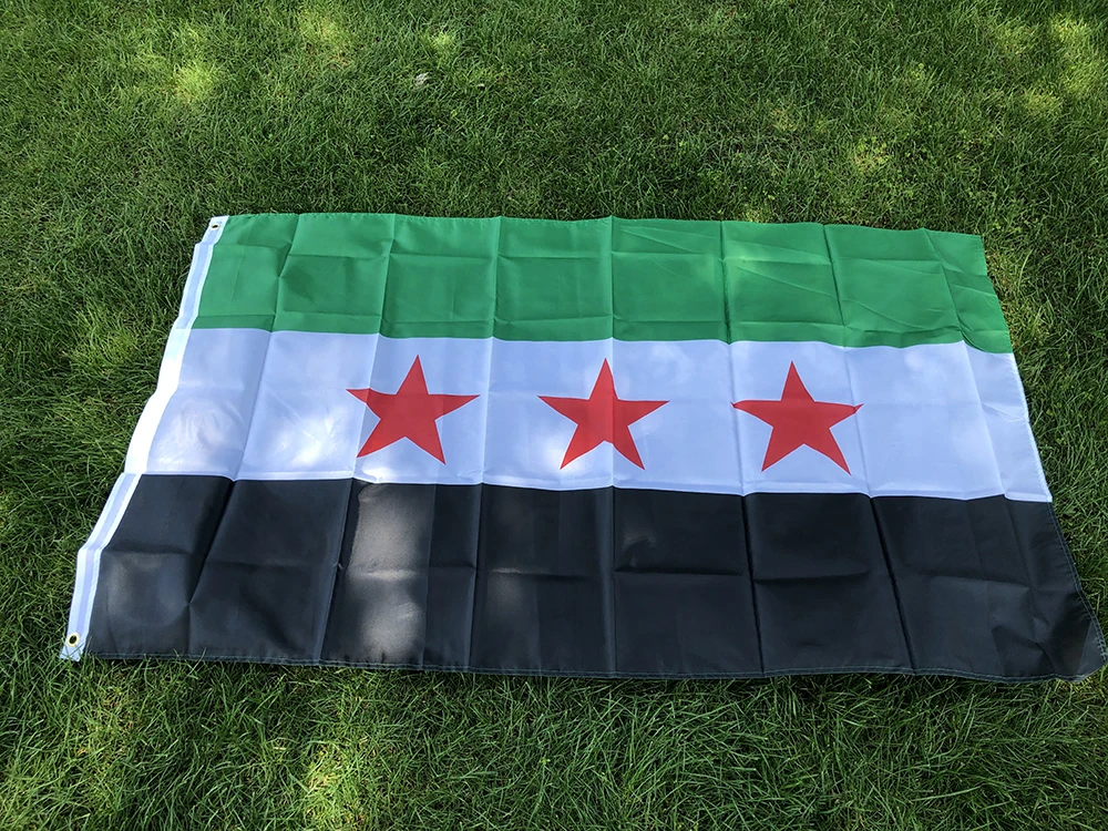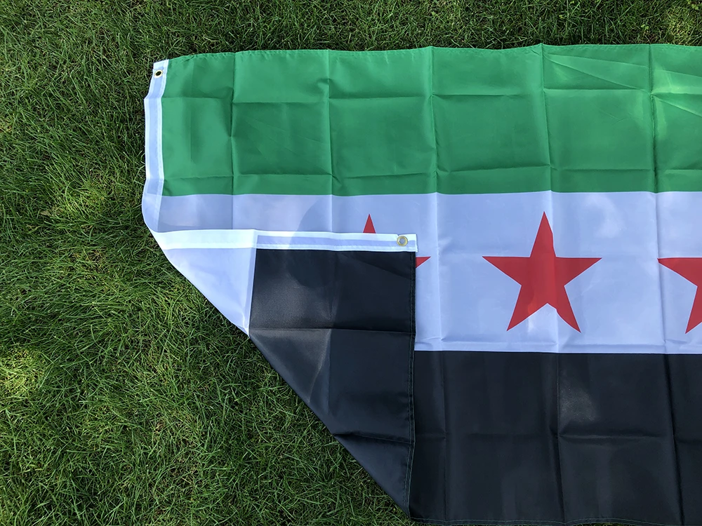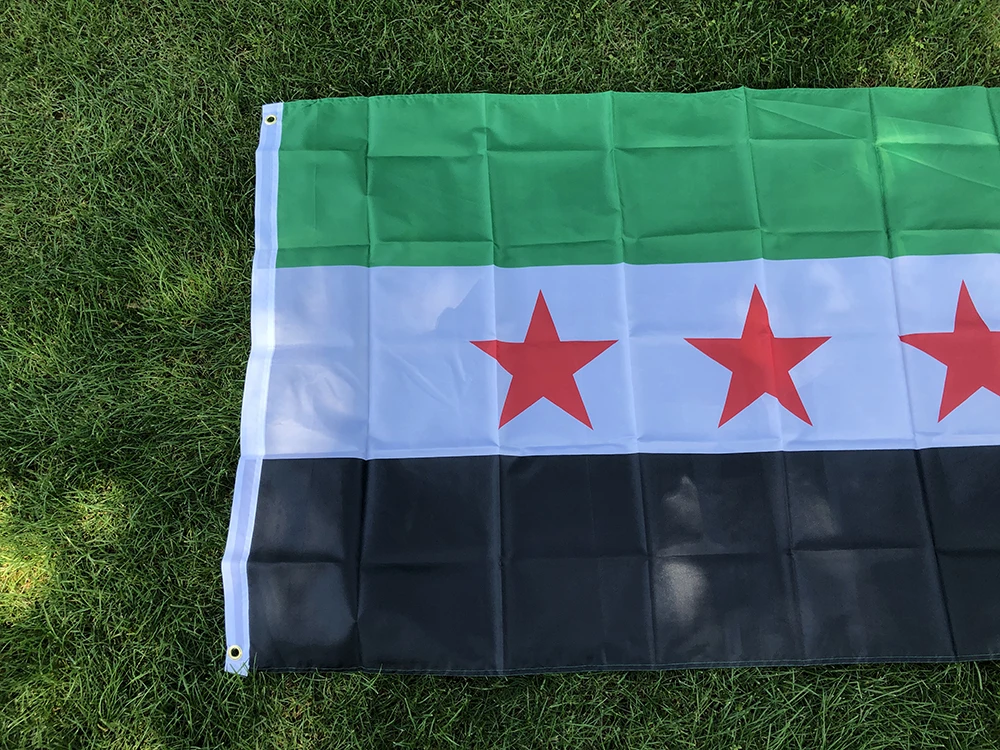 Bandereta de la Siria de SKY, 90x150cm, bandera de tres estrellas siria de la República árabe siria, banderas colgantes para decoración del hogar