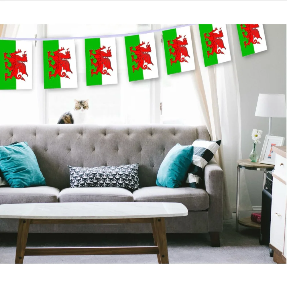 Banderas de Gales Banderas de banderines de Gales 14*21cm/setBuntings Festival Fiesta Vacaciones Gales cadena Bandera triangular