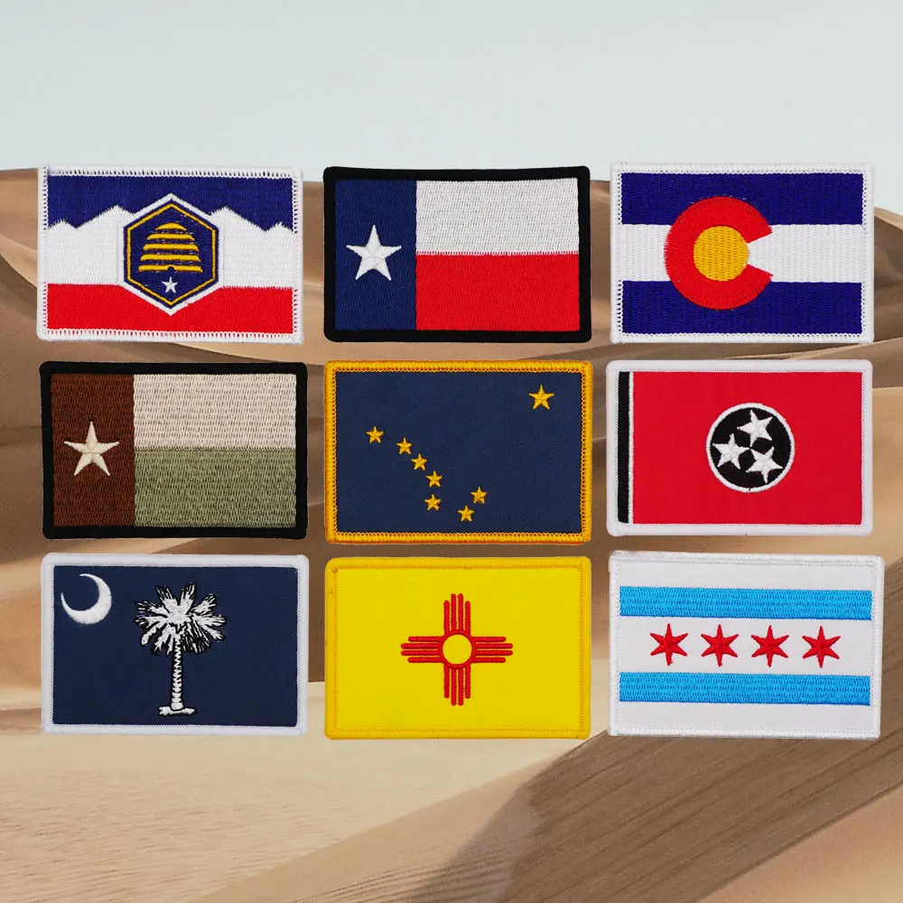 Banderas de varios estados de Estados Unidos, parches bordados tácticos para mochilas y ropa, accesorios militares