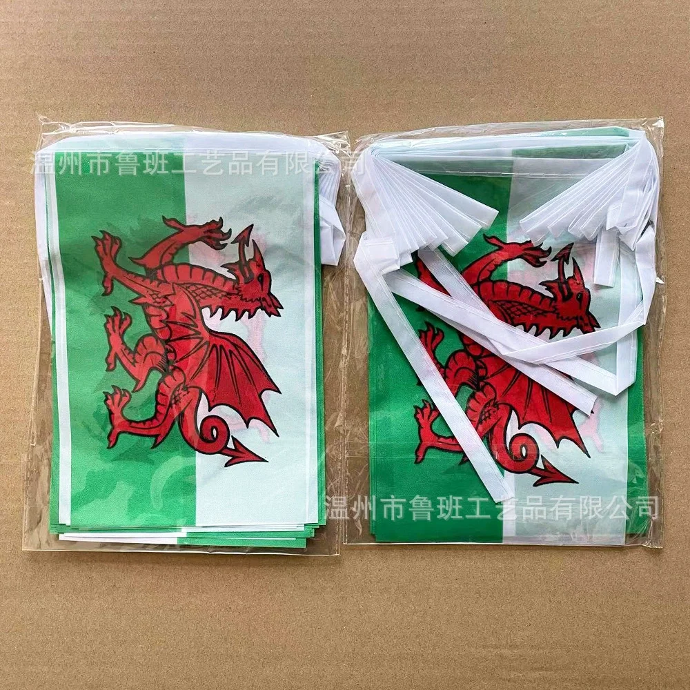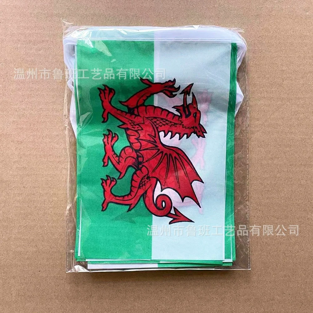 Banderas de caza de sables, 14x21cm, 20 unids/lote, banderas de hilo de Welsh, pancarta de banderos para decoración de fiestas y festivales