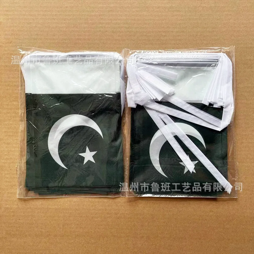 Banderas SKY FLAG Pakistán, 14x21cm, 20 unids/lote, banderas de hilo de Pakistán, pancarta de banderas, Festival, fiesta, vacaciones para decoración
