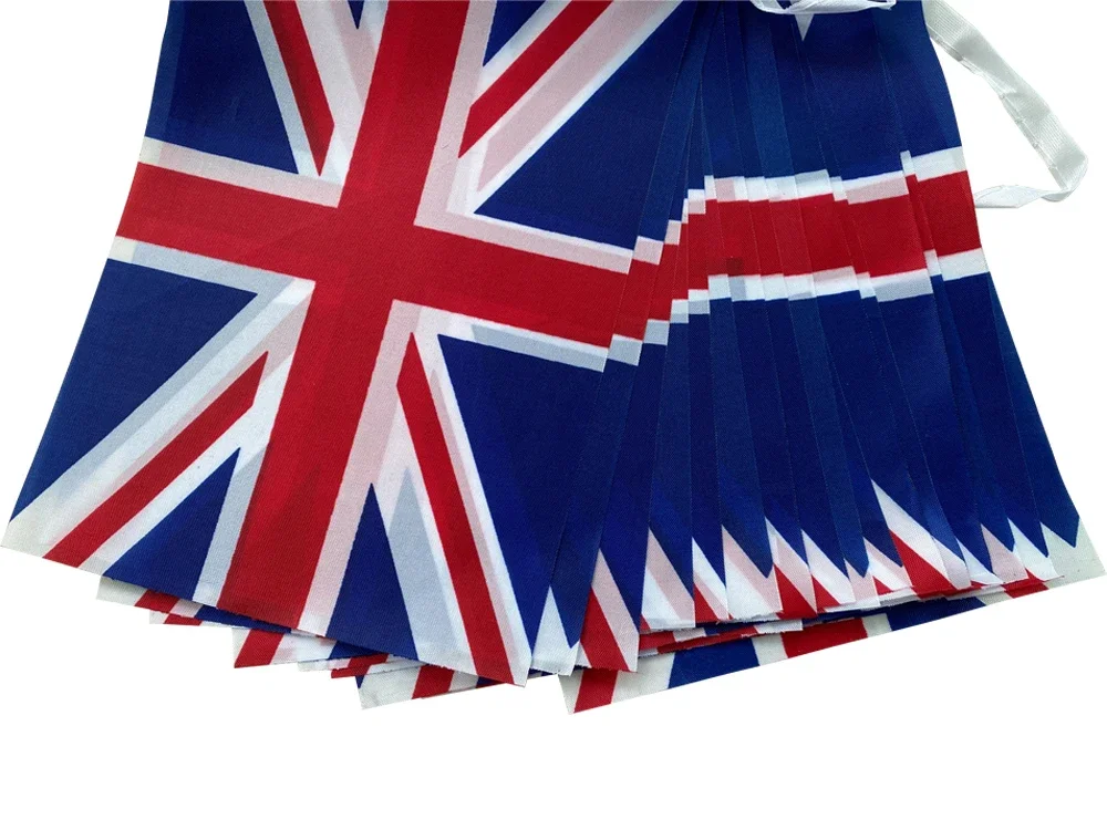 Banderines SKY FLAG del Reino Unido, 14x21cm, 20 unidades/lote. Guirnalda de banderines del Reino Unido para decoración de fiestas y festivales.