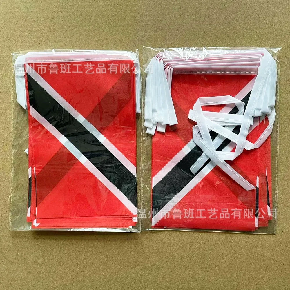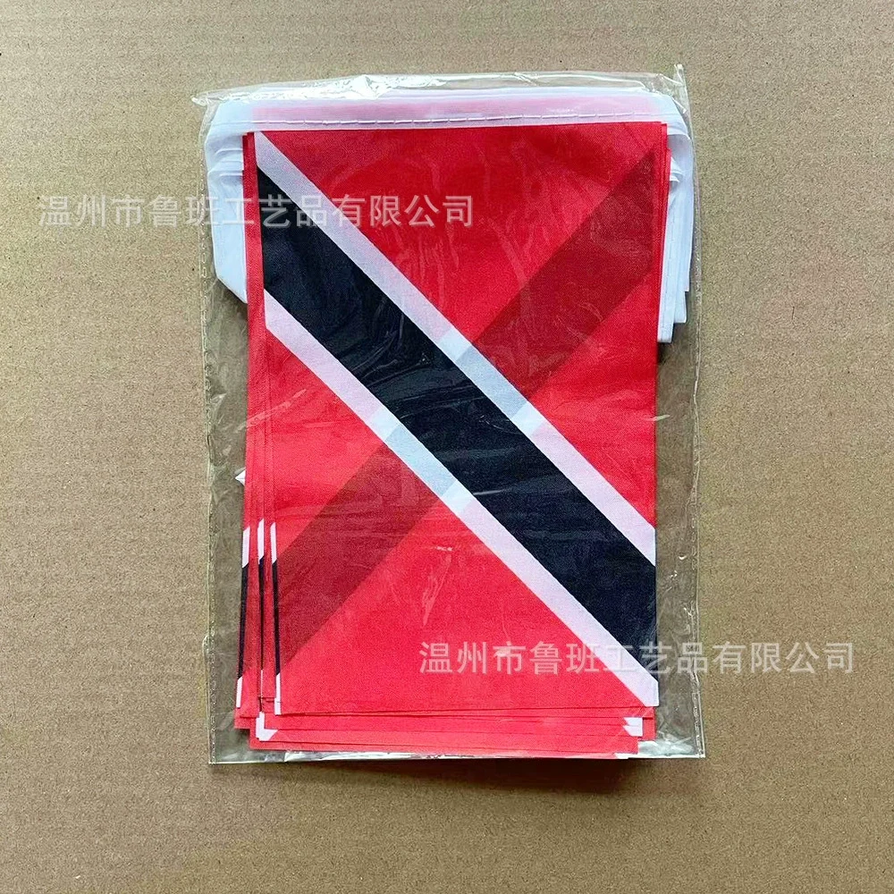 Banderas de banderines SKY FLAG Trinidad y Tobago, 14x21cm, 20 unids/lote, banderas de hilo Trinidad y Tobago, banderines para decoración
