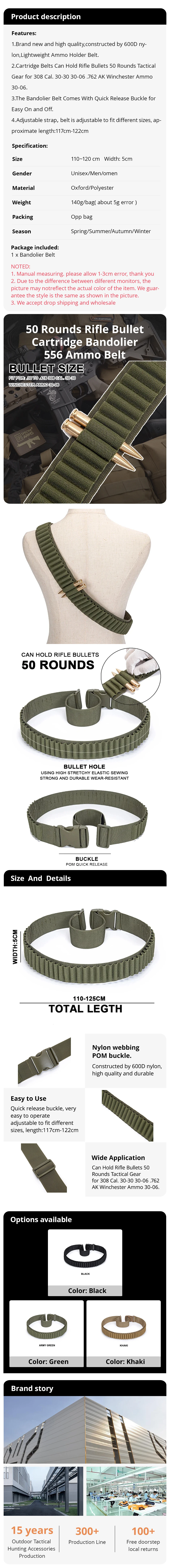 2.Cartridge Belts Can Hold Rifle Bullets 50 Rounds Tactical Gear for 308 Cal. 30-30 30-06 .762 AK Winchester Ammo 30-06.