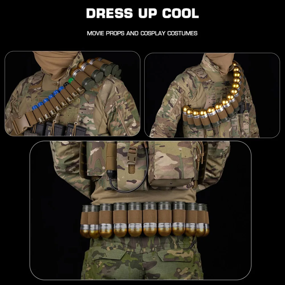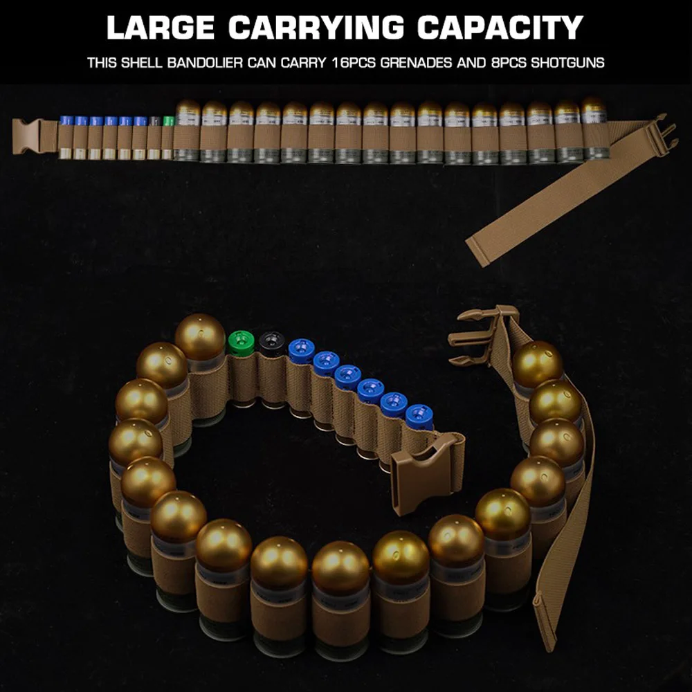 Cinturón de banda de concha de escopeta redonda para bandolero de concha de granada de 16x40mm con soporte de munición de escopeta de 8x12 GA bolsa Mag Airsoft
