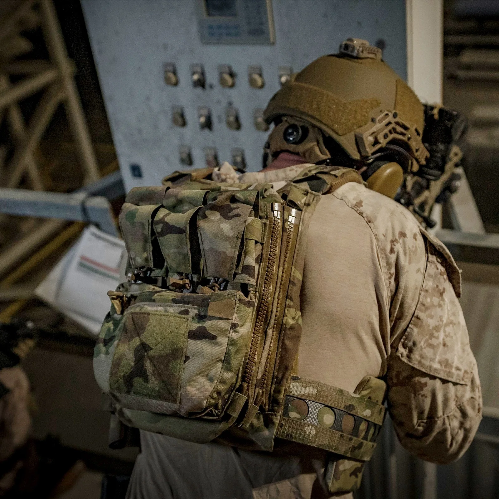 ▶El bolsillo GP inferior proporciona almacenamiento de los elementos esenciales de la Misión. Equipado con cremalleras de fijación laterales para una fijación rápida y segura al portaplacas PC V5.