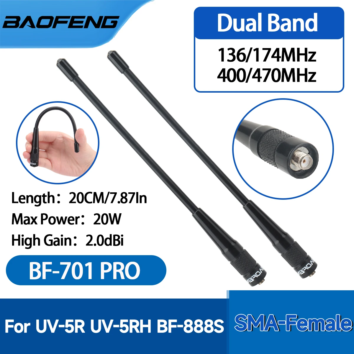 Baofeng BF-701 PRO Antena de doble banda SMA-Hembra VHF UHF 20W para Baofeng UV-5R BF-888S UV-21 PRO UV-5RH Quansheng UV-K6 UV-K5