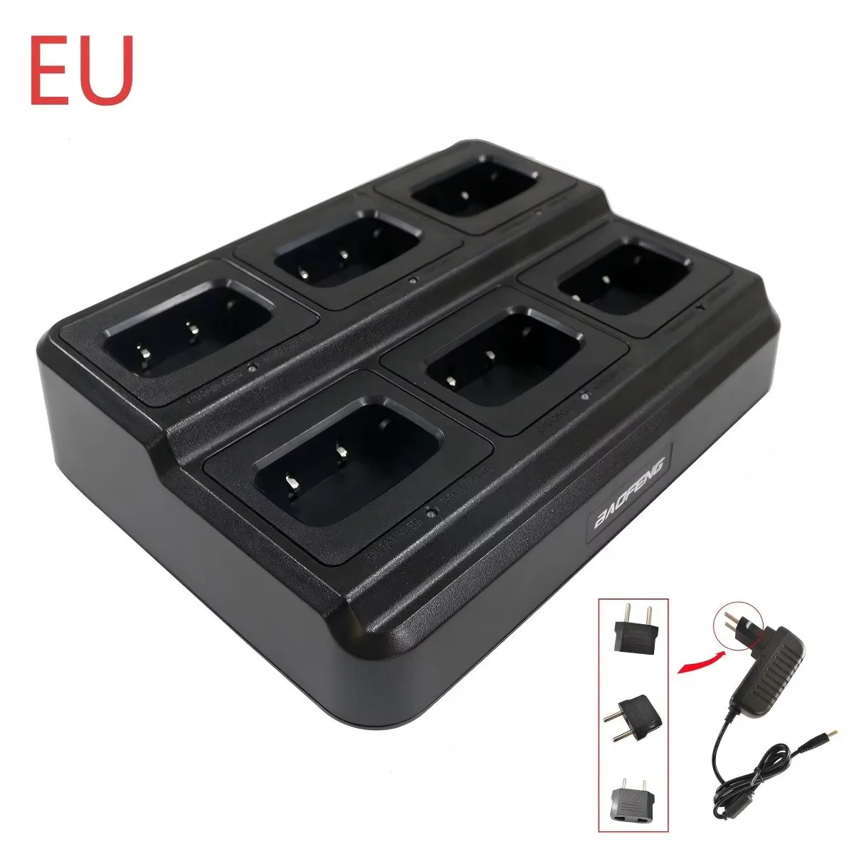 Baofeng BF-888S BF-888H BF-88E BF-777S BF-666S Walkie Talkie Cargador de seis vías Cargador multiunidad de 6 bolsillos 110-240V