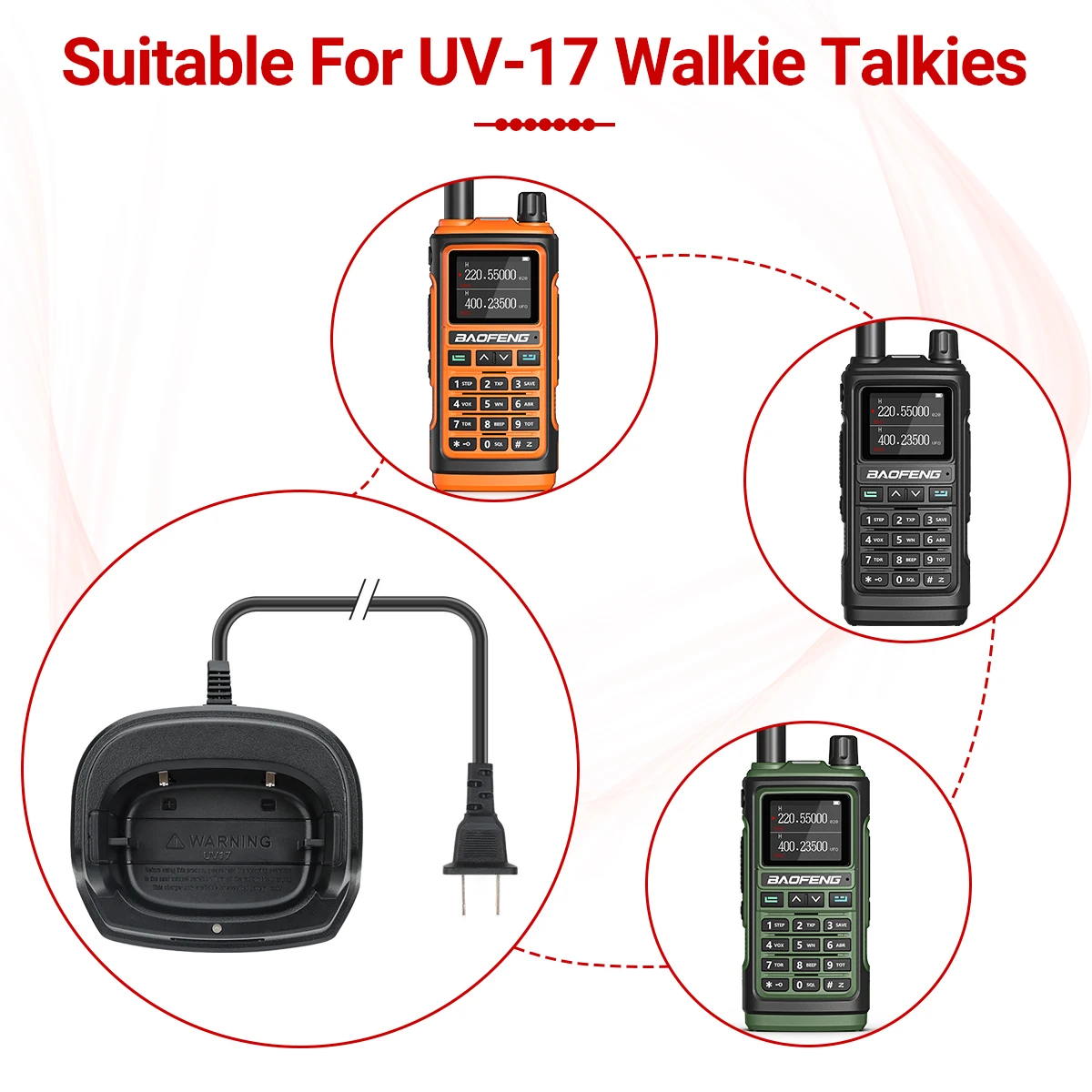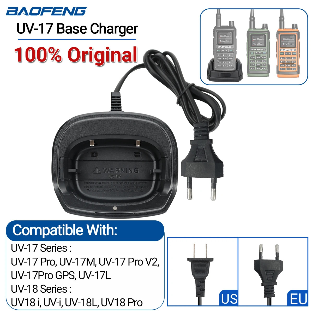 Reemplazo del cargador de batería original para la serie Baofeng 2017 Pro 1/2"
