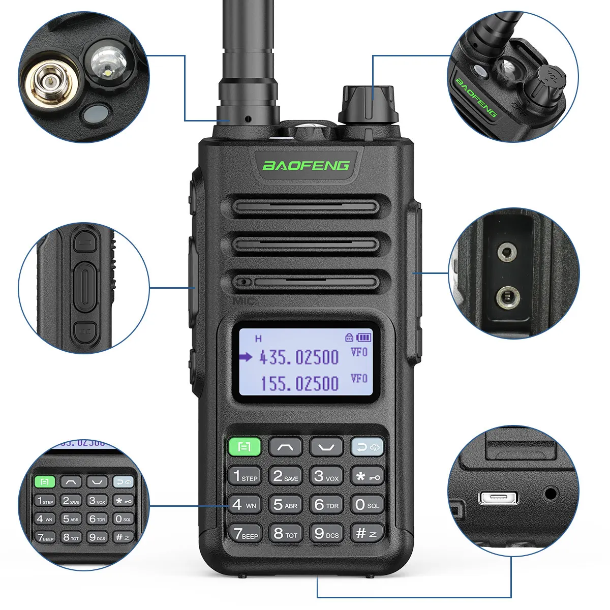 • Banda dual:El walkie talkie funciona en las bandas VHF y UHF, proporcionando una comunicación fiable en una amplia gama de frecuencias.