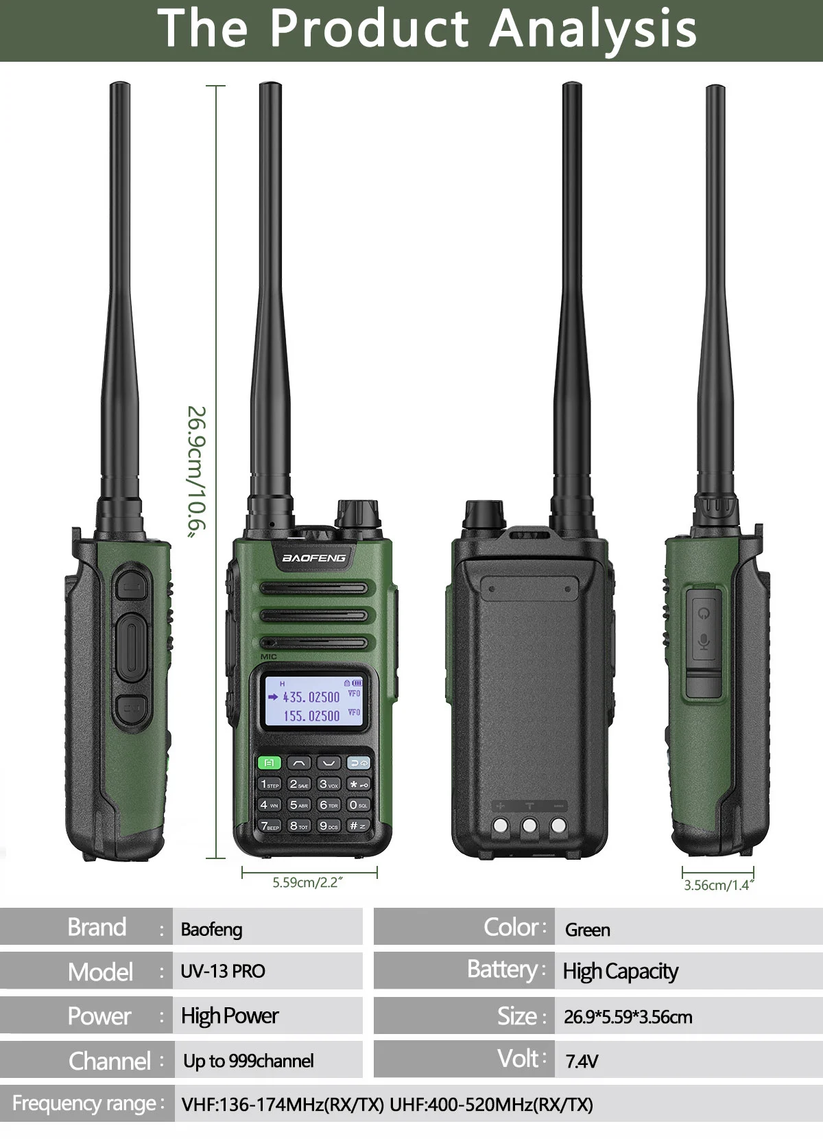 • Alta potencia:Con una potencia de salida de 5W-10W, este walkie talkie puede comunicarse a largas distancias de hasta 16 km.