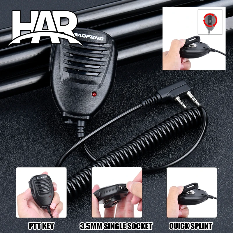 Baofeng PTT micrófono de altavoz impermeable para UV-5R BF-888S UV-82 UV-10R UV-S9 PLUS UV 13 Pro Radio bidireccional micrófono de mano puerto K