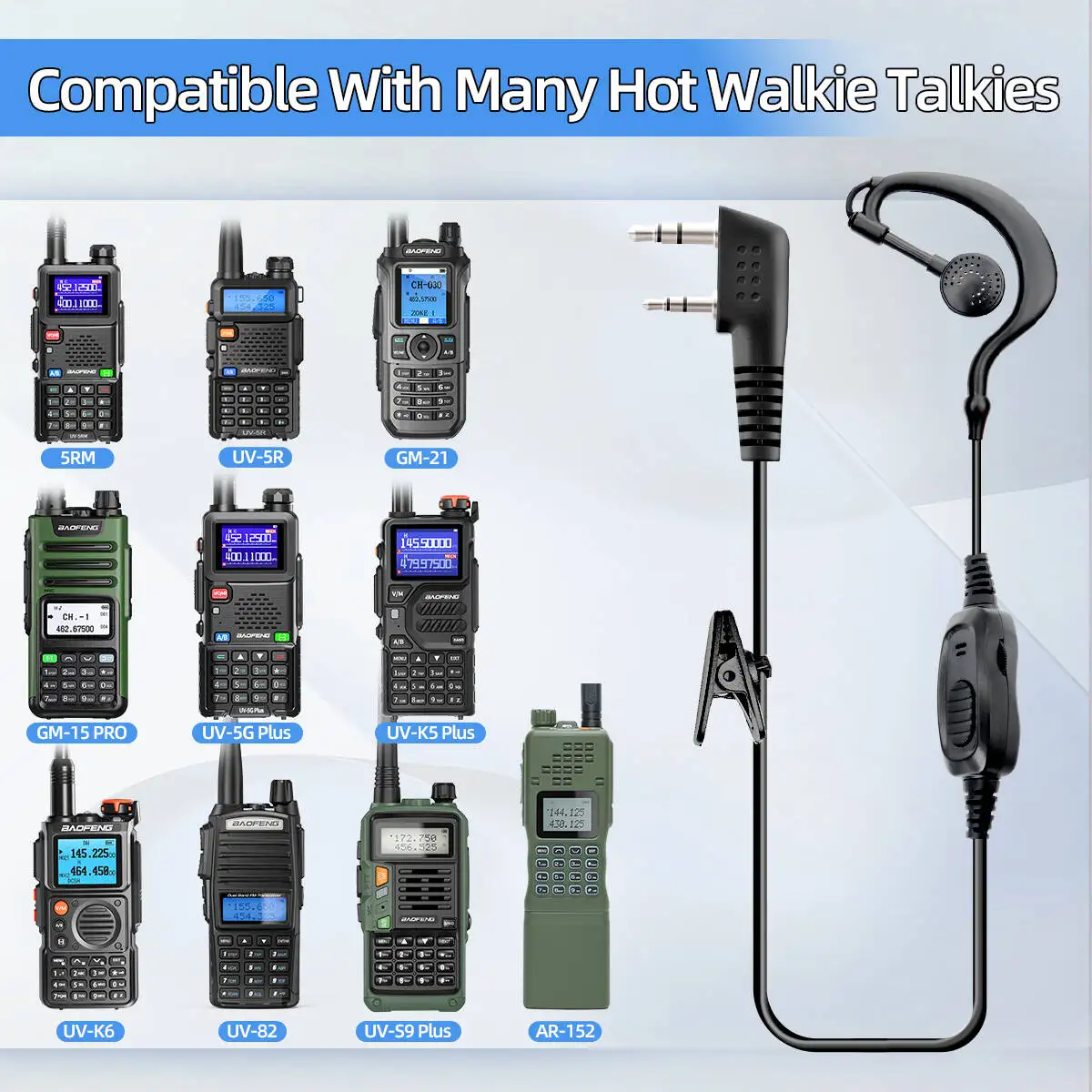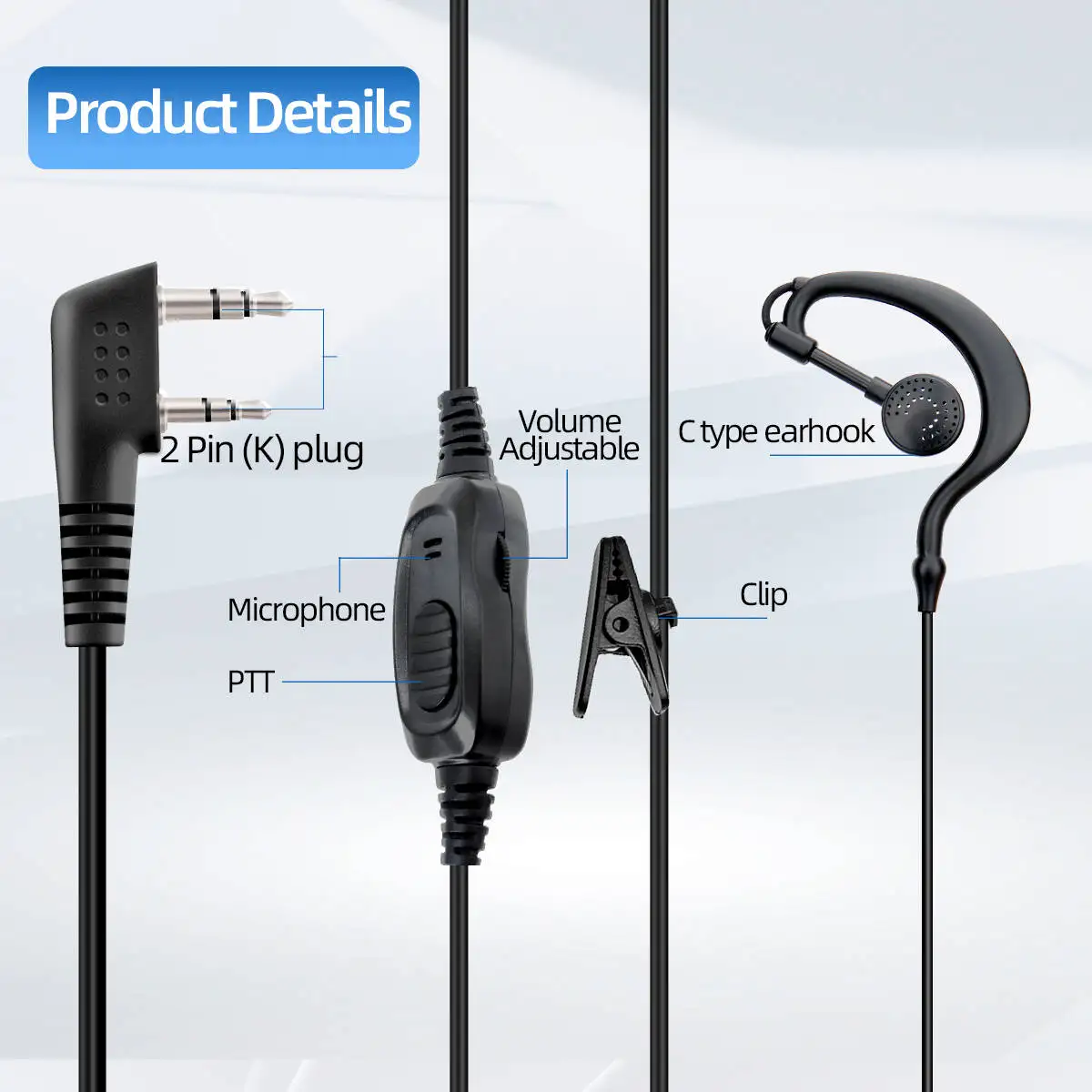 Baofeng PTT micrófono auriculares Walkie Talkie volumen ajustable K-Plug auricular para UV-5R GM-21 auricular de Radioaficionado bidireccional