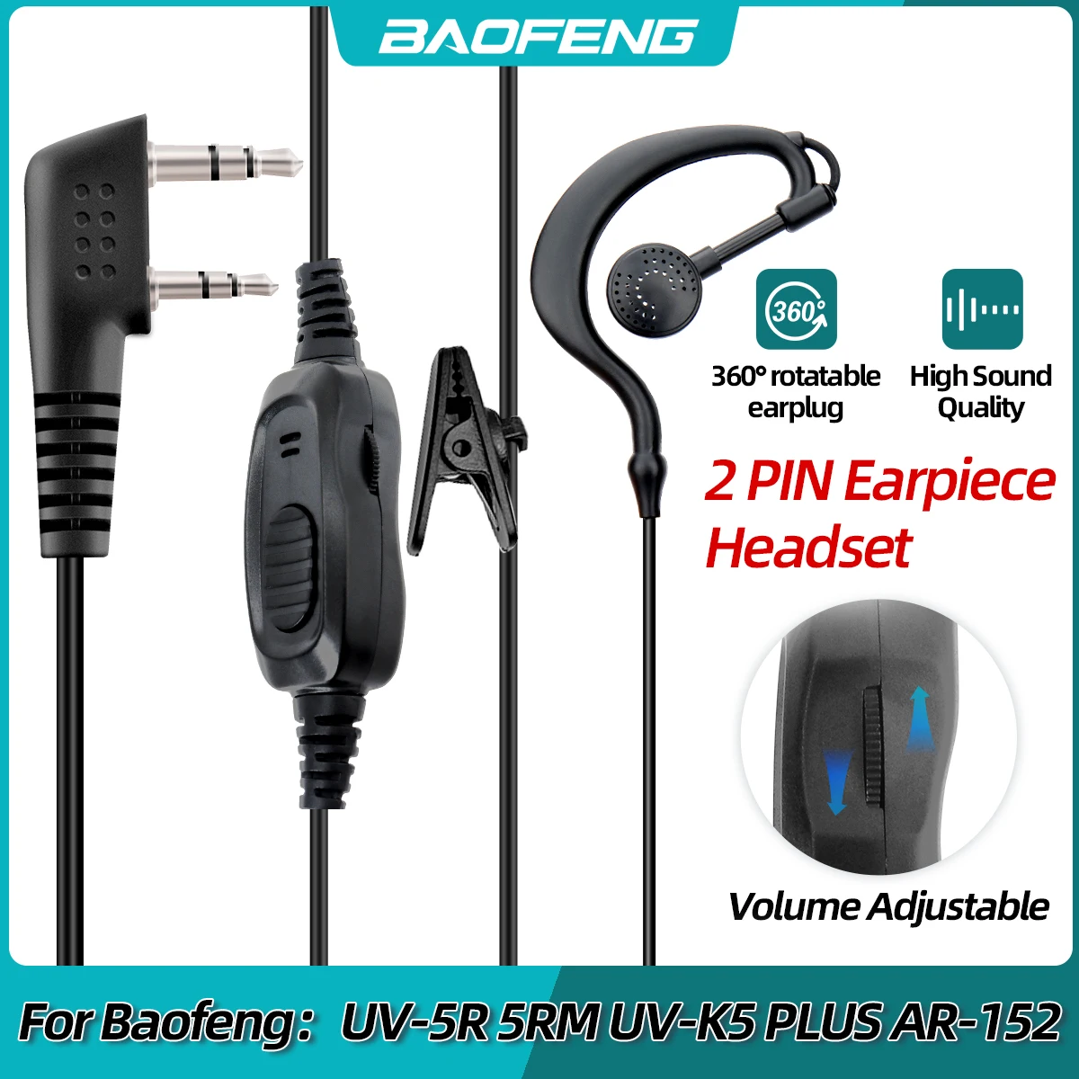 Baofeng PTT micrófono auriculares Walkie Talkie volumen ajustable K-Plug auricular para UV-5R GM-21 auricular de Radioaficionado bidireccional