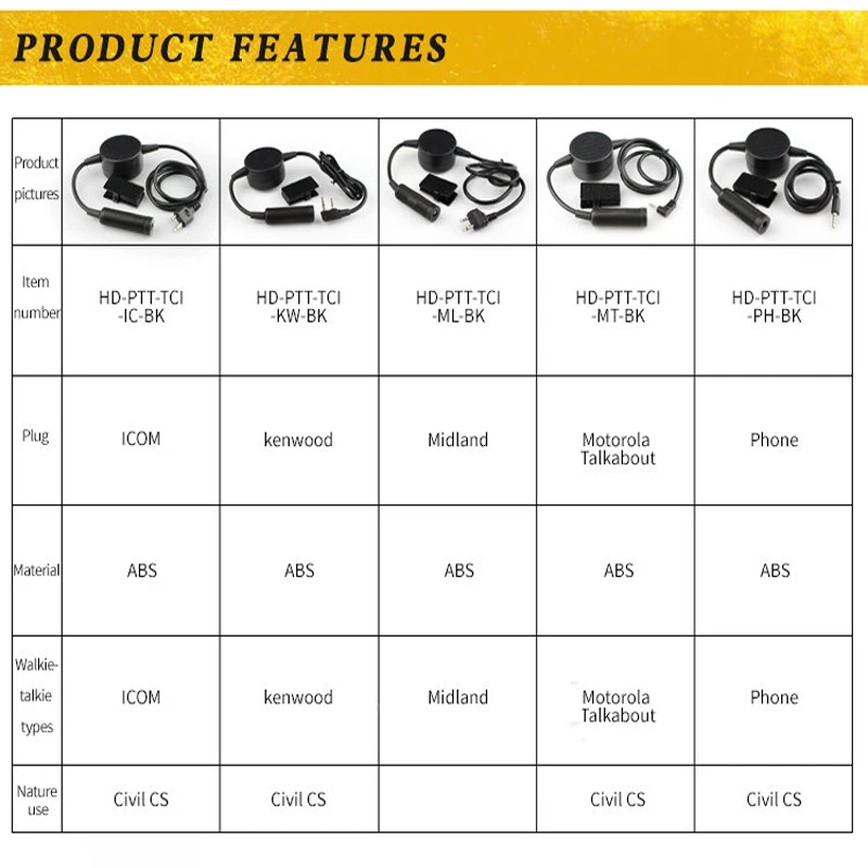 Baofeng Radio Ptt Adaptador de auriculares tácticos Kenwood Icom Midland Motorola teléfono móvil Auriculares militares Walkie-talkie TCI PTT