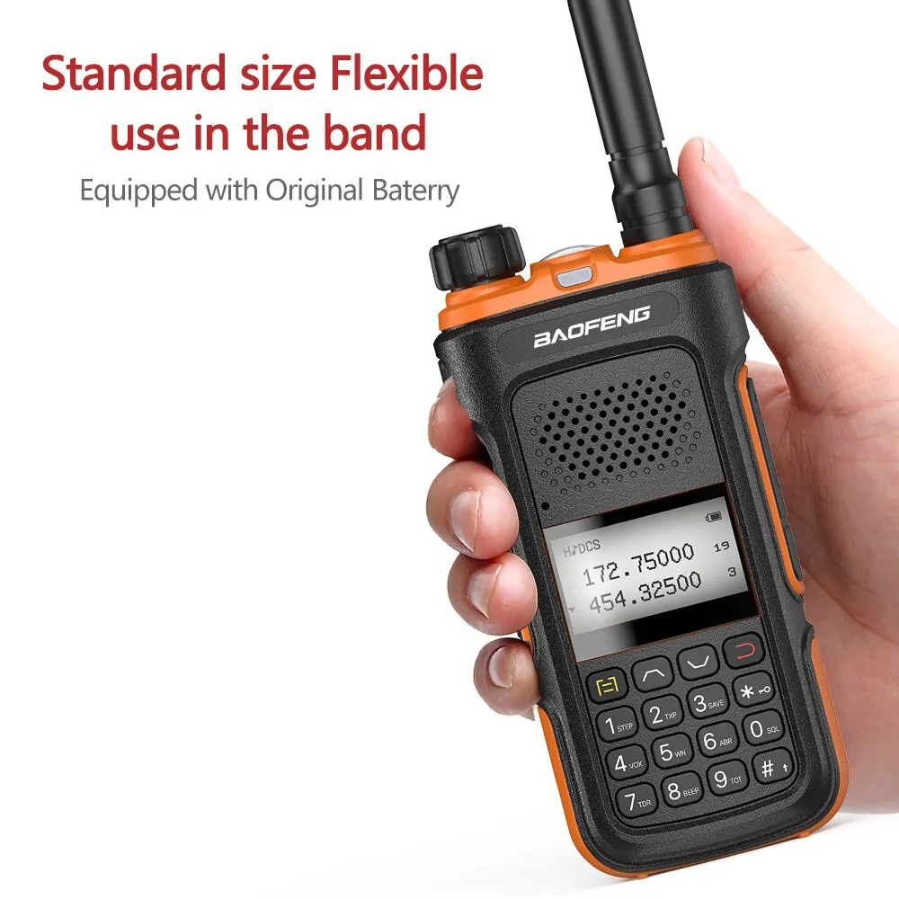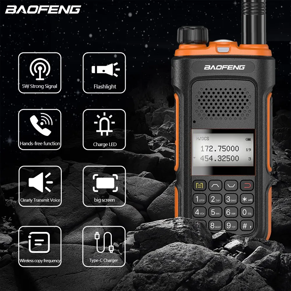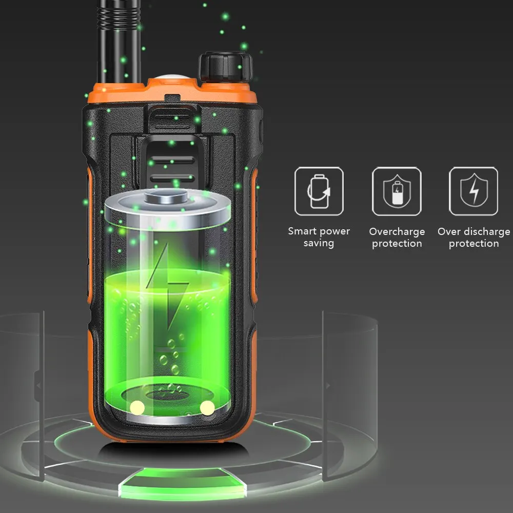 Nueva tendencia tecnología negraPantalla grande de 1,44 pulgadas. Puede ver el nombre del canal y la información de frecuencia en la pantalla; El funcionamiento manos libres (VOX) le permite transmitir directamente a través de la voz.Puede ayudarle a comunicarse claramente en muchos entornos.