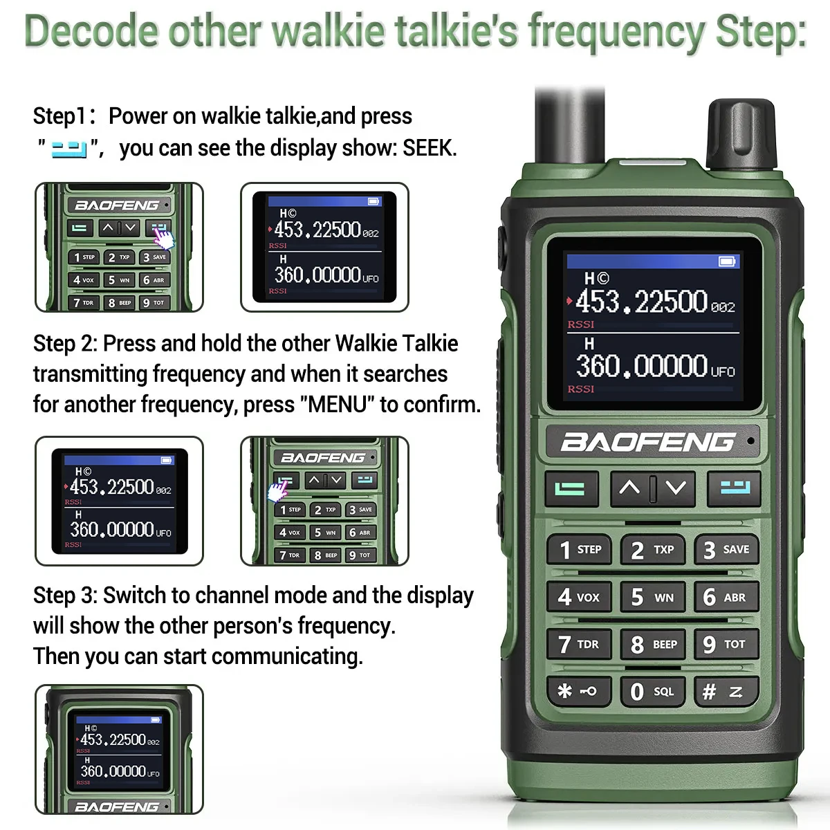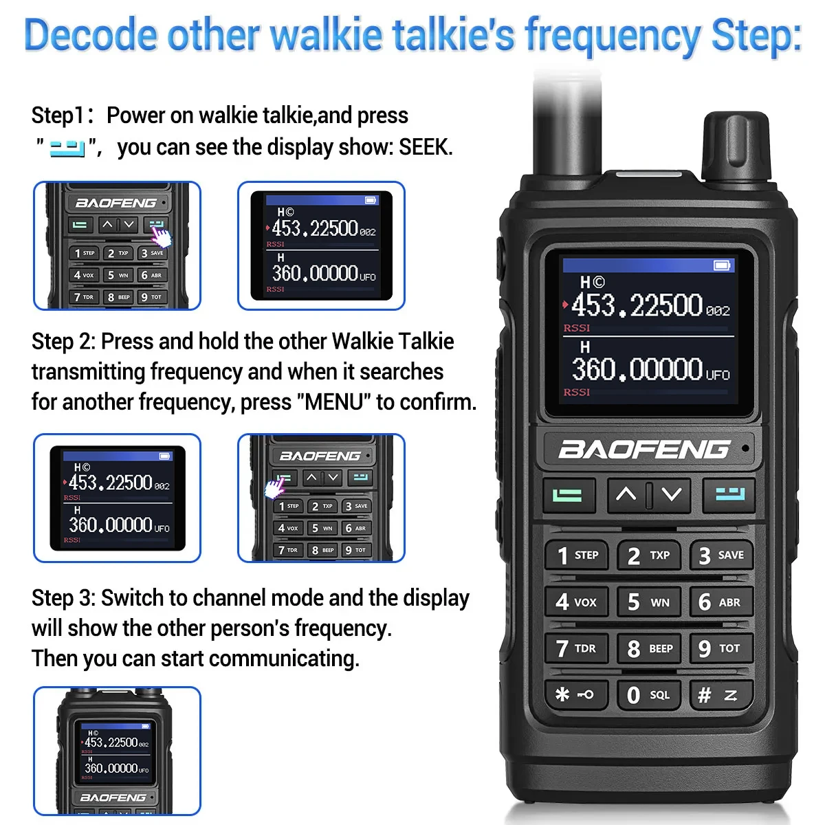 Presione el botón EXIT para ingresar a la interfaz "FQSCAN".Presione EXIT nuevamente y el UV-17M Pro buscará otra frecuencia de transmisión de radio y un código de privacidad.Finalmente presione el menú para almacenar la frecuencia.Dos walkie-talkies pueden comunicarse normalmente.La comunicación no tiene obstáculos y se rechaza la frecuencia de escritura tradicional.