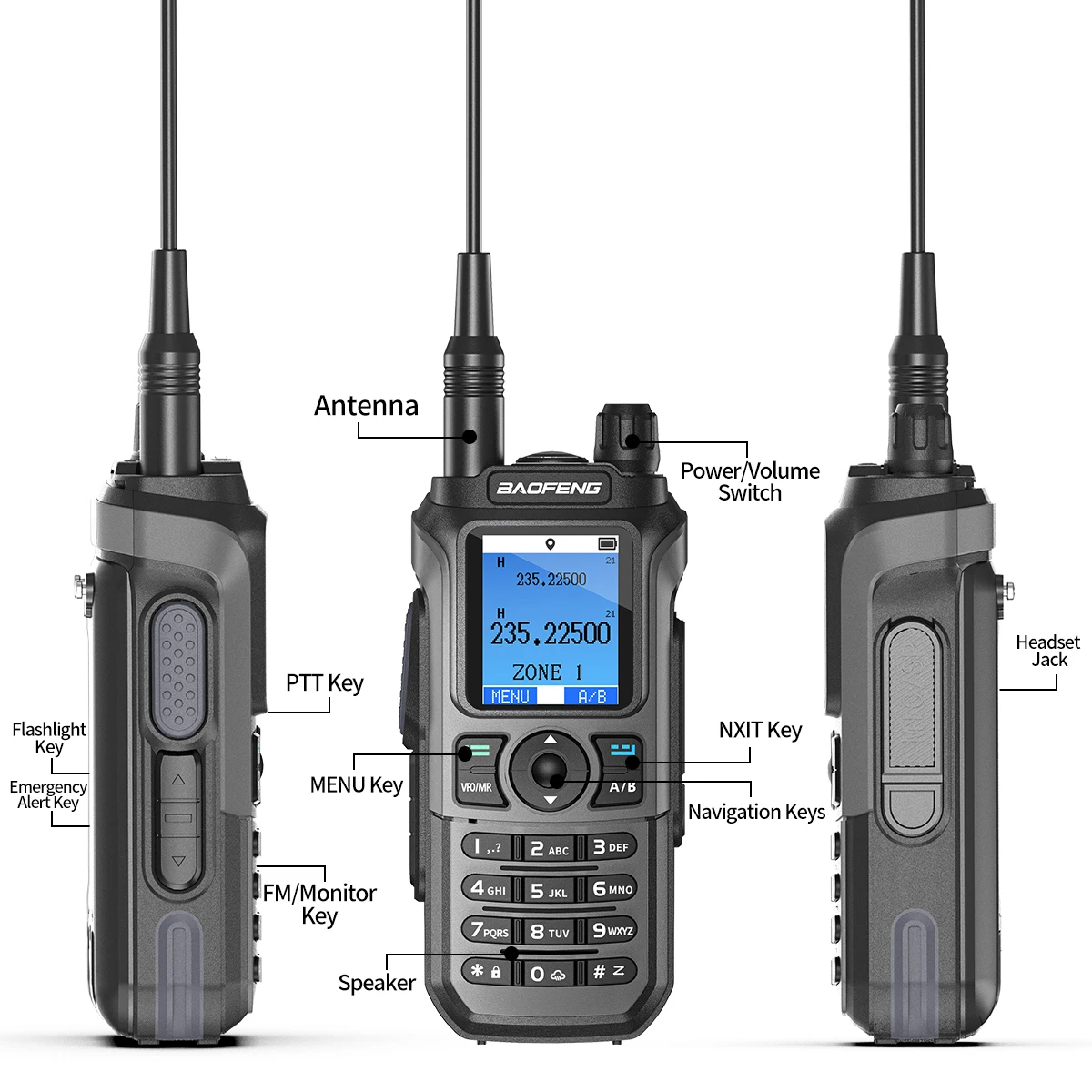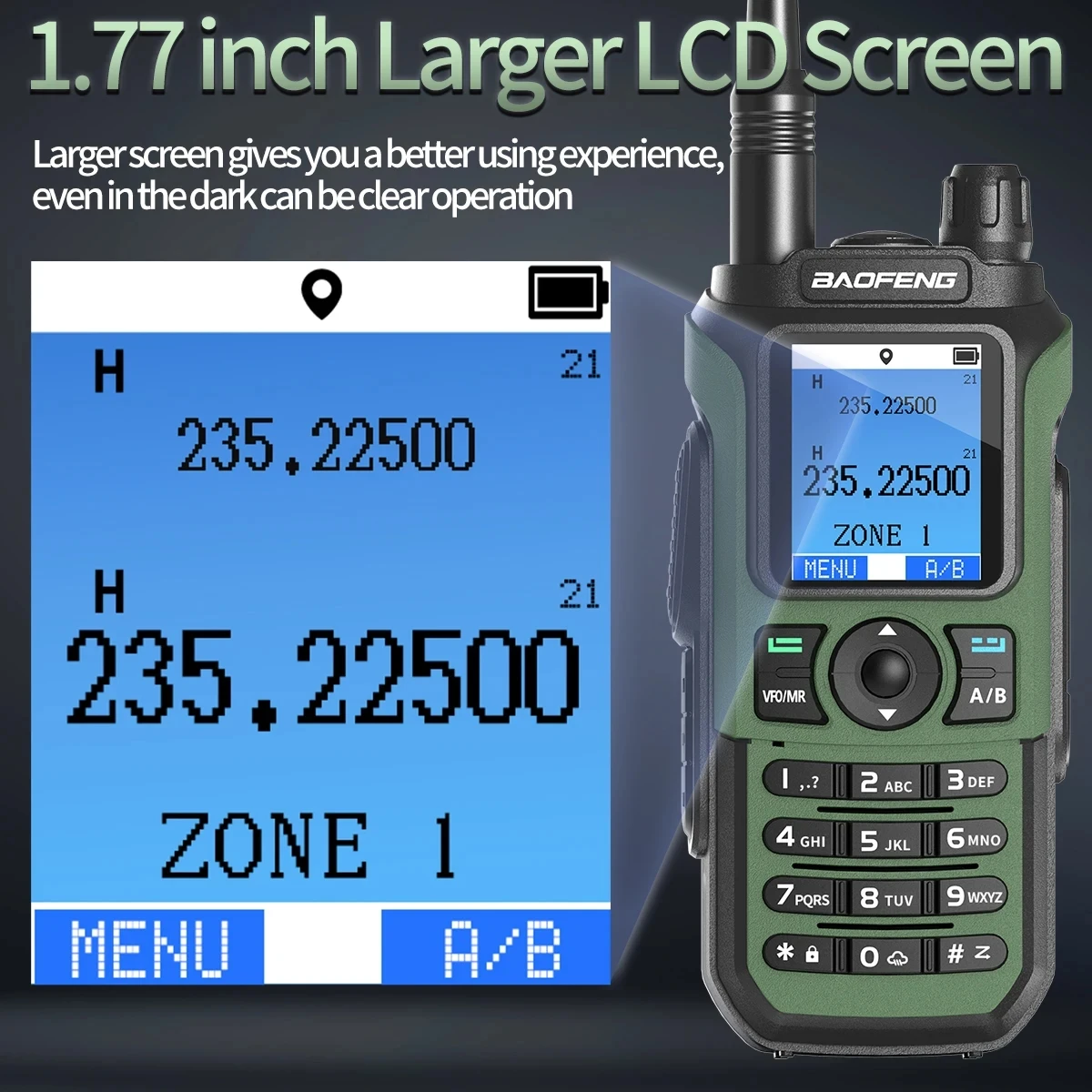 Nueva tecnología negra de tendencia Pantalla grande de alta definición de 1,77 pulgadas.Hay 2 modos de visualización diferentes de frecuencia y canal para satisfacer sus diferentes necesidades. Todos los menús de funciones de visualización en la pantalla.Como VOX/FM/CT, etc.