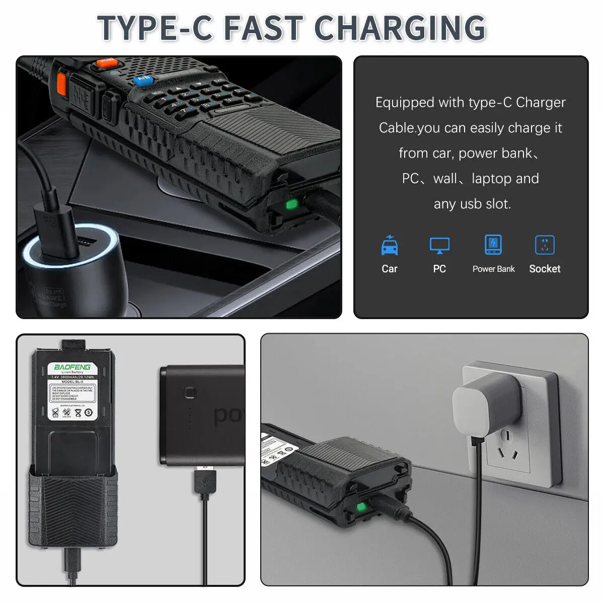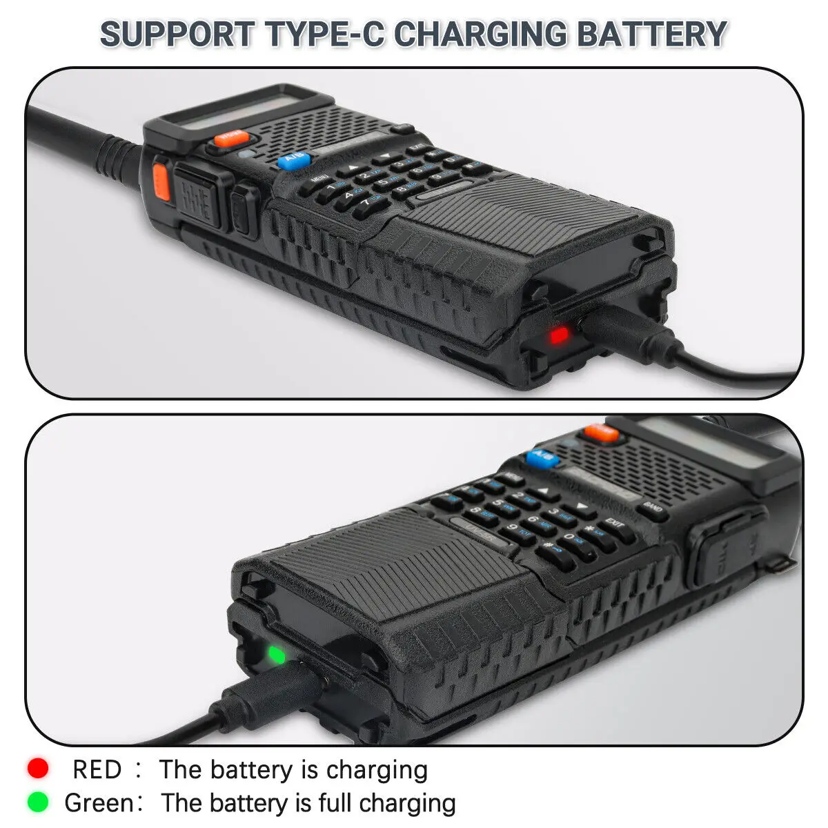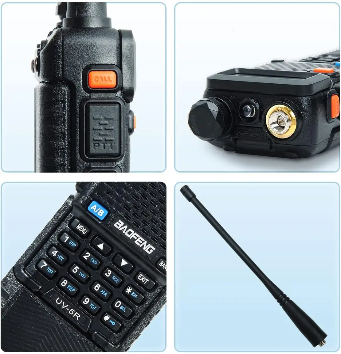 Doble banda/pantalla dual/doble modo de espera, 128 grupos de canales de almacenamiento, Compatible con otros walkie-talkies portátiles de Baofeng, como BF-F8HP, UV-82, UV-S9 Plus, TP-8Plus, BF-H6, etc. ;50 CTCSS y 104 CDCSS, cerradura de teclado automático, linterna LED;Este modelo ha sido certificado por la FCC, ID de la FCC: 2AJGM-UV5R.