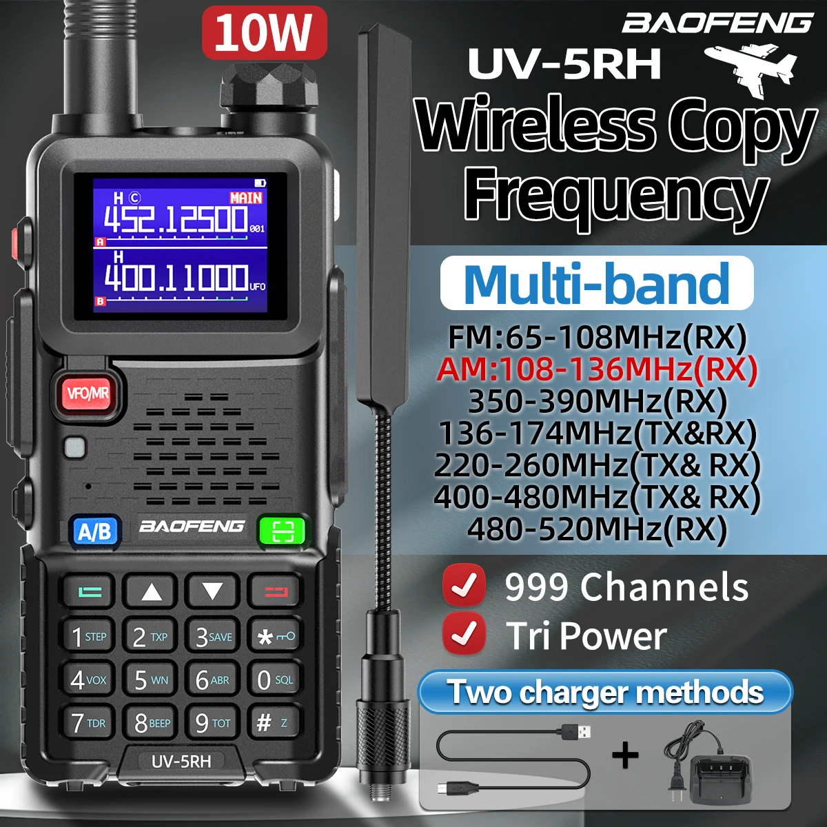 UV-5RH es una radioaficionada profesional, verdadera potencia de 10 W, conmutación de tres potencias alta/media/baja.Hasta 999 canales. Pantalla a color de 1,77 pulgadas.