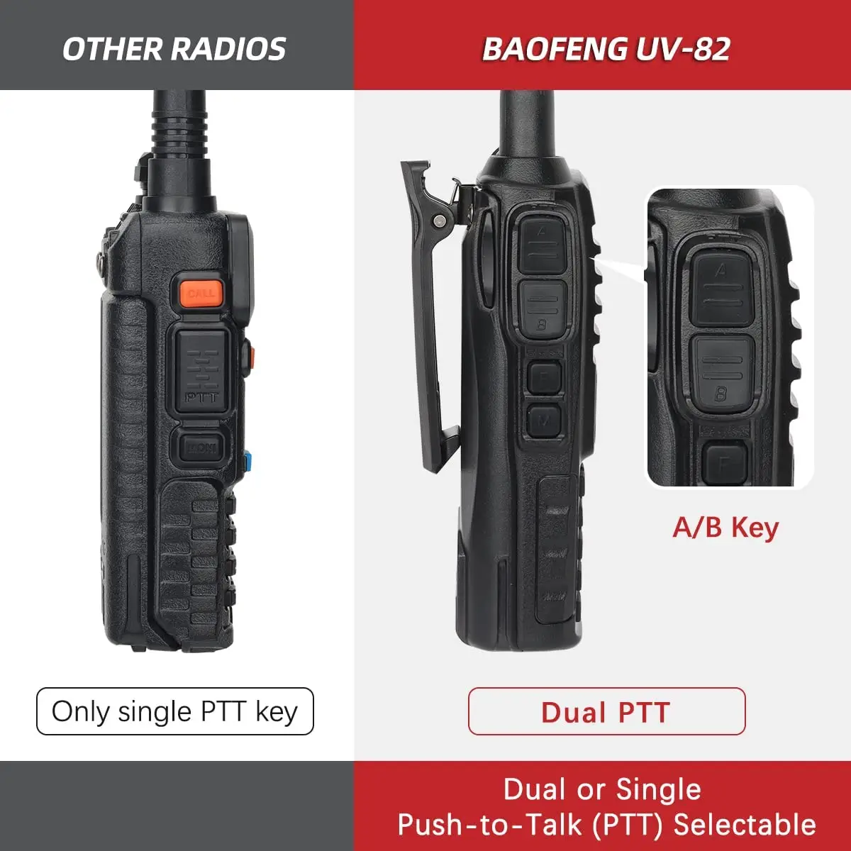 👍Único doble PTT: La radio viene con un diseño único de doble botón PTT, proporciona una calidad de sonido clara, el interruptor PTT es resistente y duradero Más conveniente y portátil.
