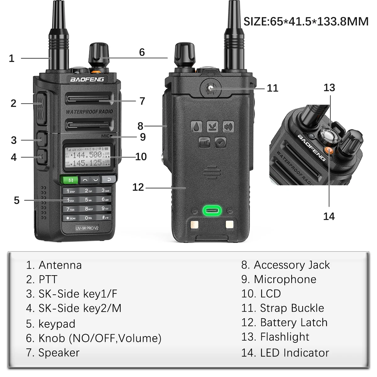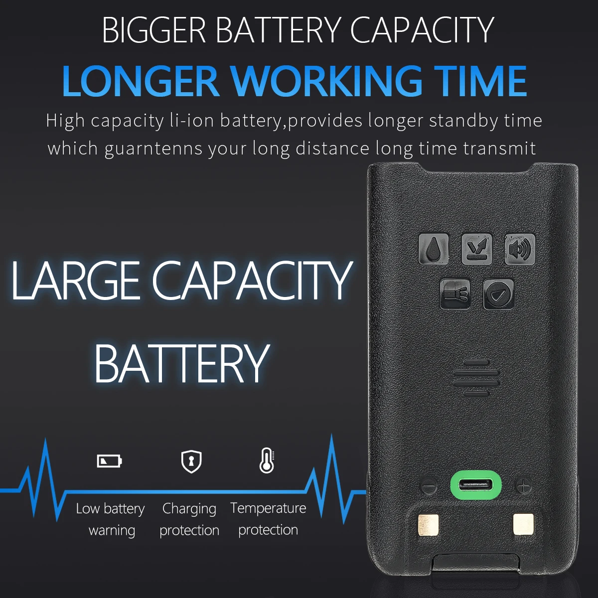 • IP68 impermeable :Opere el walkie talkie en cualquier condición climática sin preocuparse por el daño del agua.
