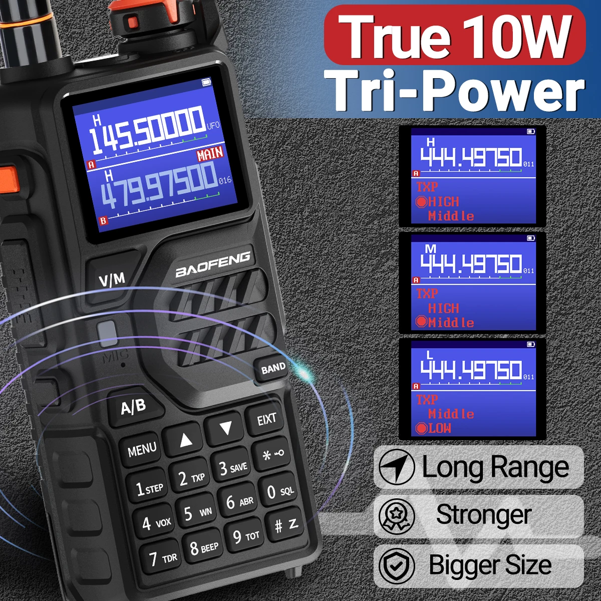 • Potencia de salida de 10W :La Baofeng UV K5 Plus ofrece una potencia de salida máxima de 10W, garantizando una transmisión de señal clara y fuerte a distancia.