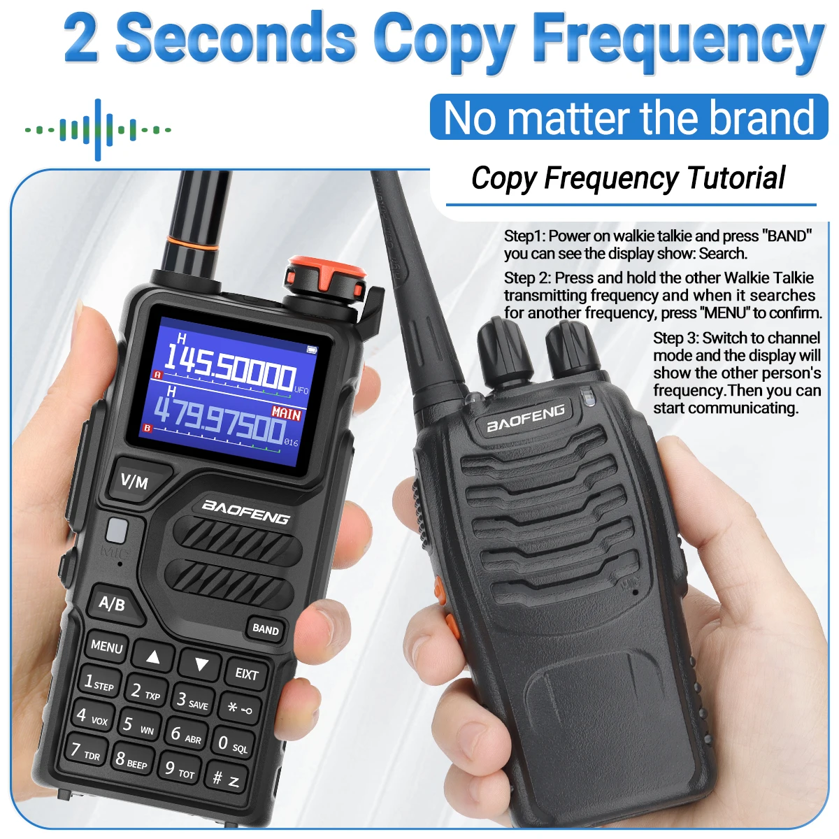 • Frecuencia de copia inalámbrica :El Baofeng UV K5 Plus tiene una función de copia de frecuencia inalámbrica, lo que permite comunicaciones en varias bandas de radio.