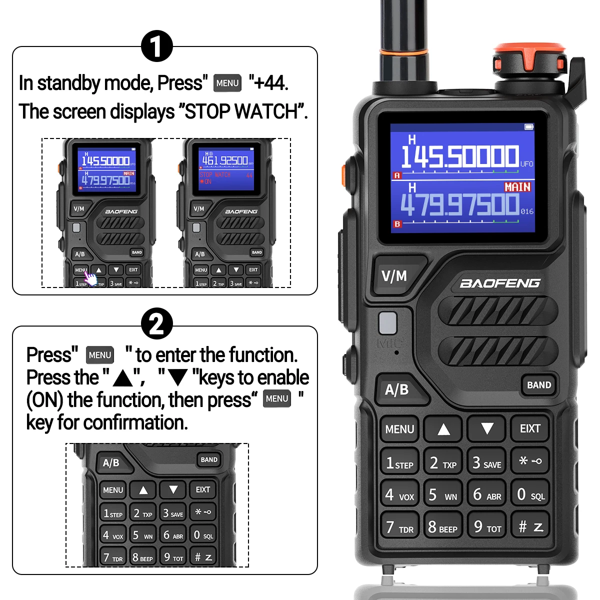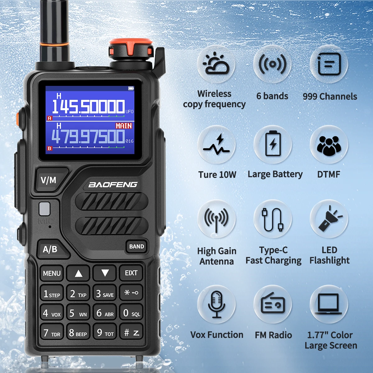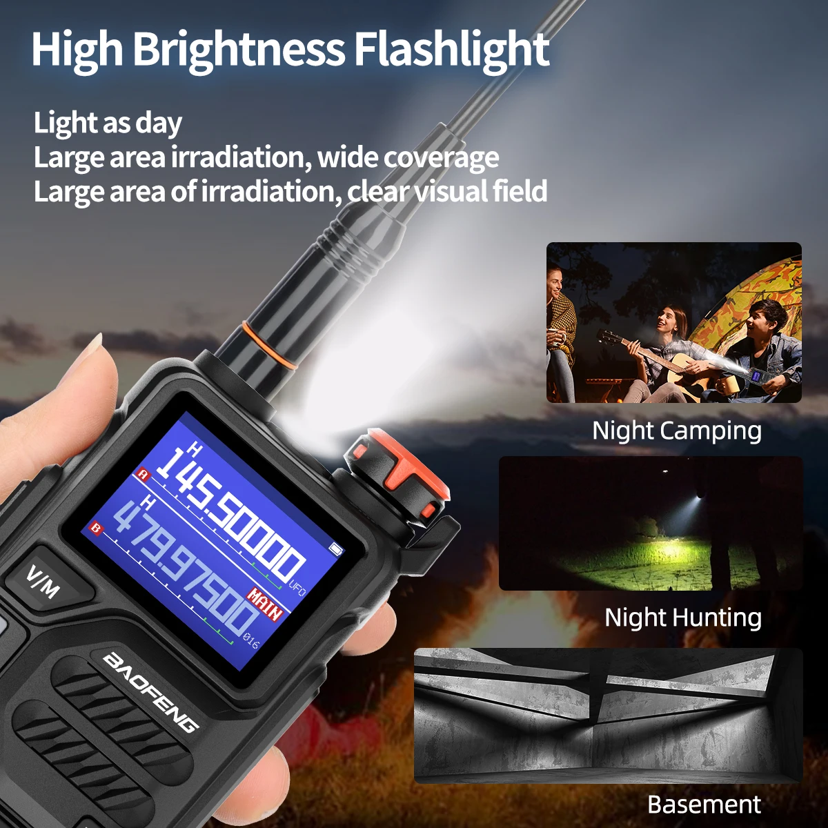 UV-K5 Pro es una radio de jamón profesional, alta potencia, alta/media/Baja Tri-Power Switchover. El walkie talkie actualizado ha agregado una banda de frecuencia de aviación. Hasta 999 canales, pantalla a color de 1,77 pulgadas, temporizador de cronómetro y función DTMF.