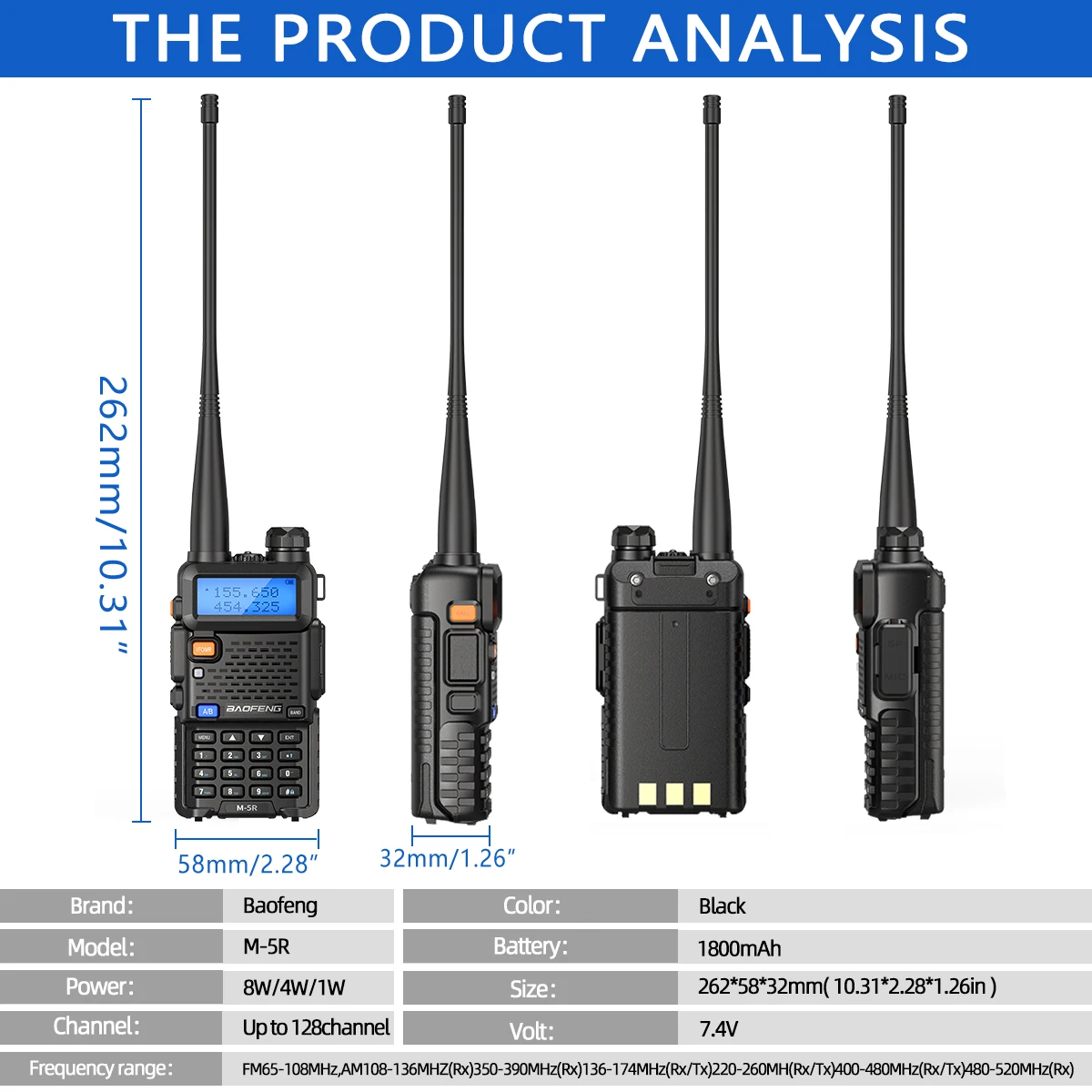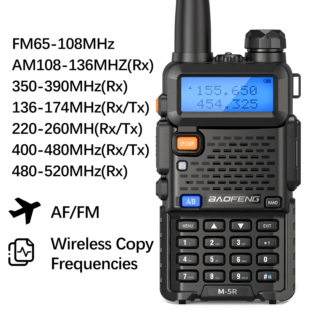 FM65- 108MHz AM108- 136MHZ(Rx) 350-390MHz(Rx) 136-174MHz(Rx/Tx) 220-26