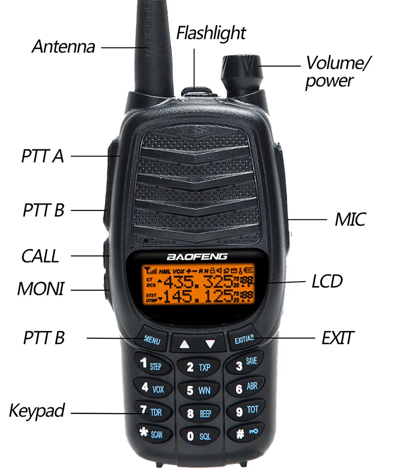 Rango de frecuencia: MHz 65-108 (solo recepción FM),136-174MHZ y 400-520MHZ (TX/RX).